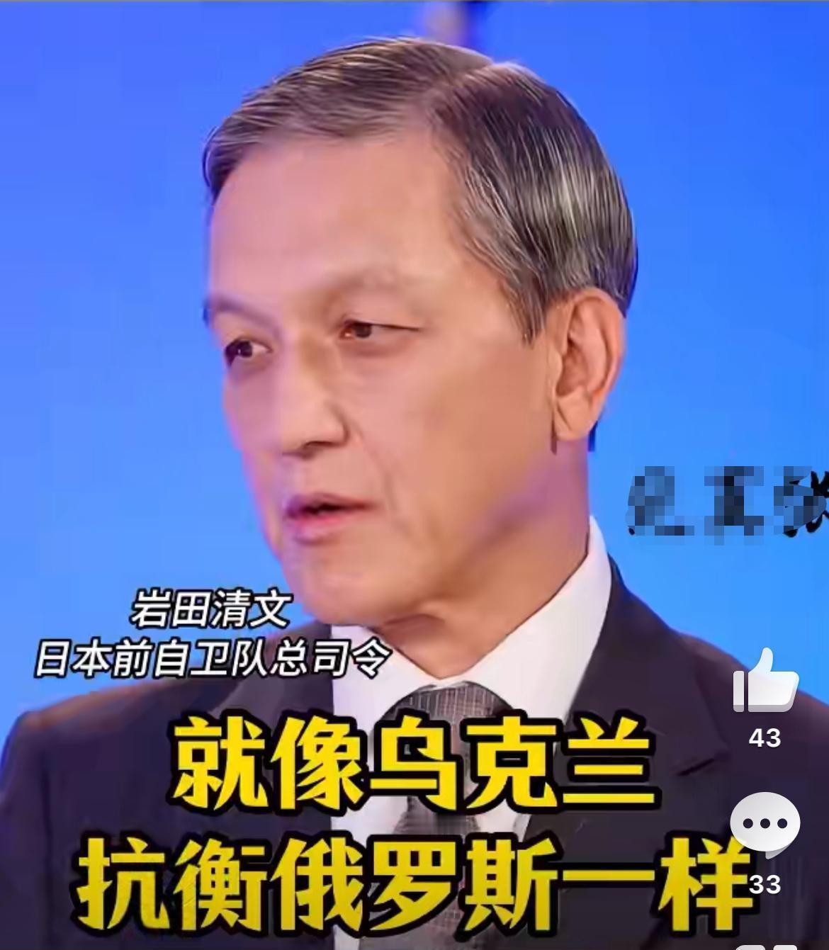 日本前自卫队总司令真是多虑了!! 岩田清文:中国中国和日本发生战争,要做好打持久战的准备,像乌克兰对抗俄罗斯那样,提前做好后勤补给。 我想说俄乌战争和中日冲突不能一概而论,我们是联合国授权的!采用任何武器都是合理合法!谁让你们违反国际法,谁让你们挑衅在先?如果不将日本军国主义的爪子剁了!就对不起亚洲乃至世界人民!更对不起我们先烈用生命换来的和平! 日本没有战略纵深拿什么持久 ,持久战不会有,只有闪电战……