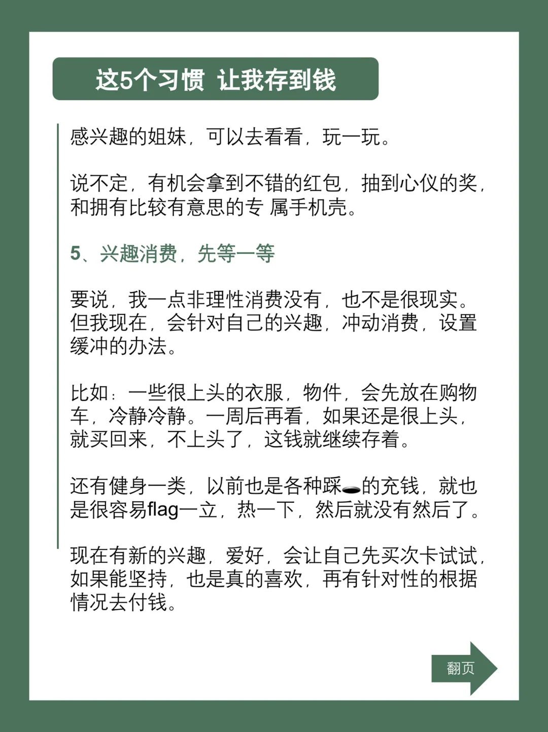 我很早以前也是存钱困难户,一年到头剩不下钱。后来,慢慢对钱有了概念,一点点认识和养成存钱习惯,理性花钱,花心思 想如何赚更多。一步步的积累,才有了现在。在存钱攒钱赚更多的路上,这5个习惯帮助我很多。