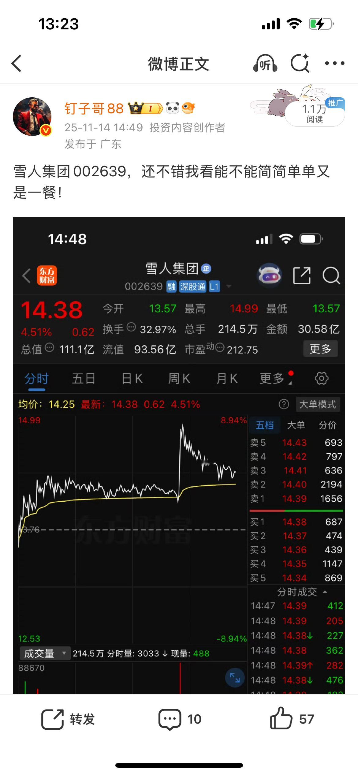 吃肉吃肉上周五的雪人集团强势拉起!吃肉的兄弟178!
