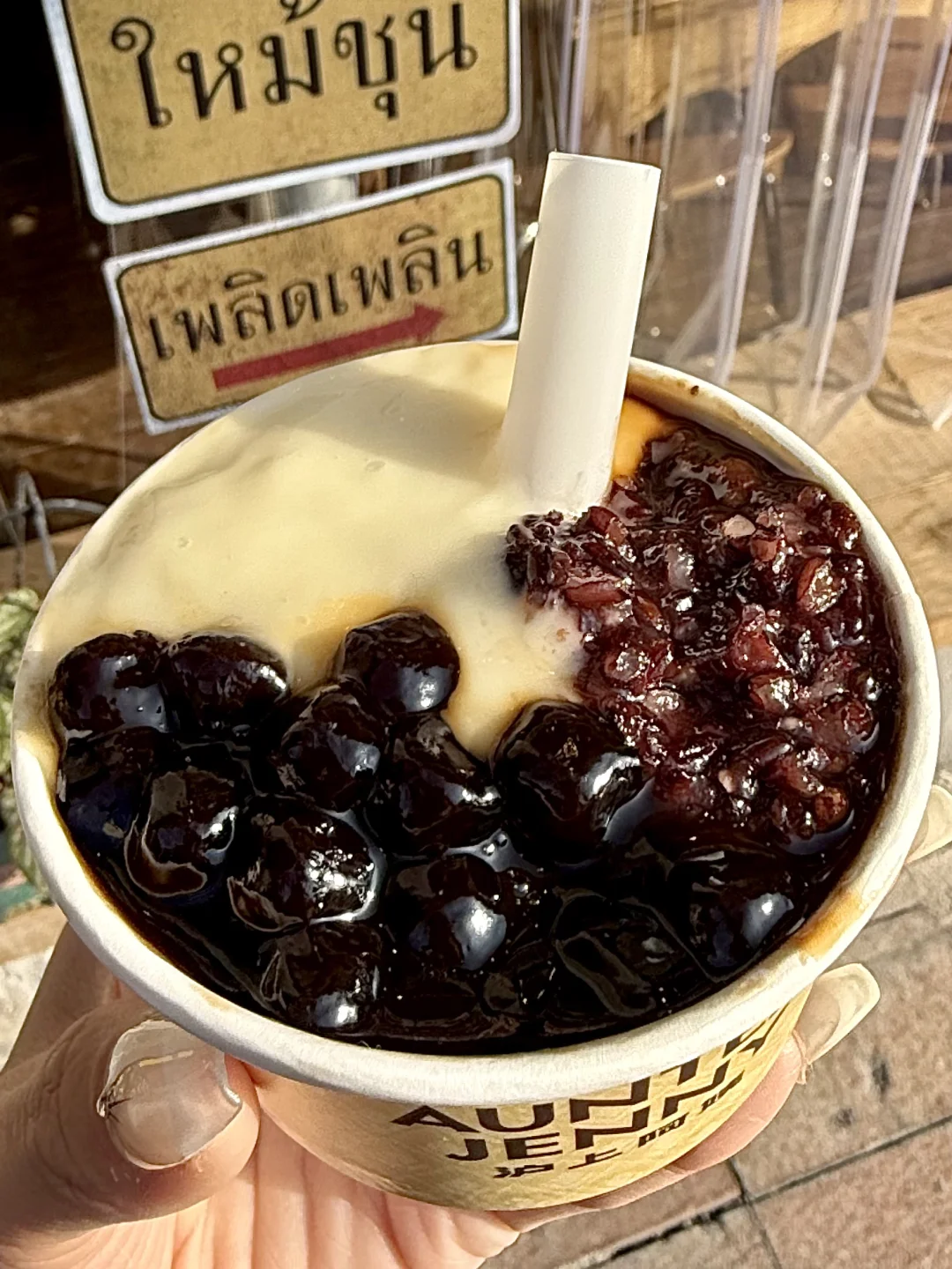 好喝到很难相信这竟然是出自婶子之手😅 泰奶咸法酪是什么仙品,泰式红茶拉制的太有水平了….非常!特别!泰!真的梦回曼谷了!!! · 隐藏喝法:泰式咸法酪牛乳茶➕米麻薯➕双份黑糖波波➕三分糖!!咸甜香醇四重交叠!一口就沦陷。。超级超级香醇浓的泰式红茶,搭配芝士咸法酪,每一口都能吸到珠珠!!软糯糯的层次感无敌了[色色R][色色R] · 还有杯同系列的泰式糯香米麻薯也吼吼喝!糯米香真嘟好诱人!!加入牛乳和泰式红茶,自带血糯米和米麻薯,层次感juju丰富 这次的新包装满满的泰兰德风情也太好看惹! ·