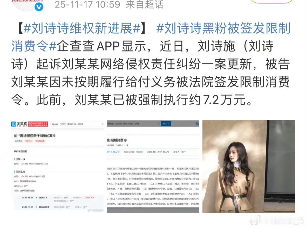 刘诗诗告嘿维权,被告已经被强制执行约7.2w支持刘诗诗维权,网络非法外之地!!!