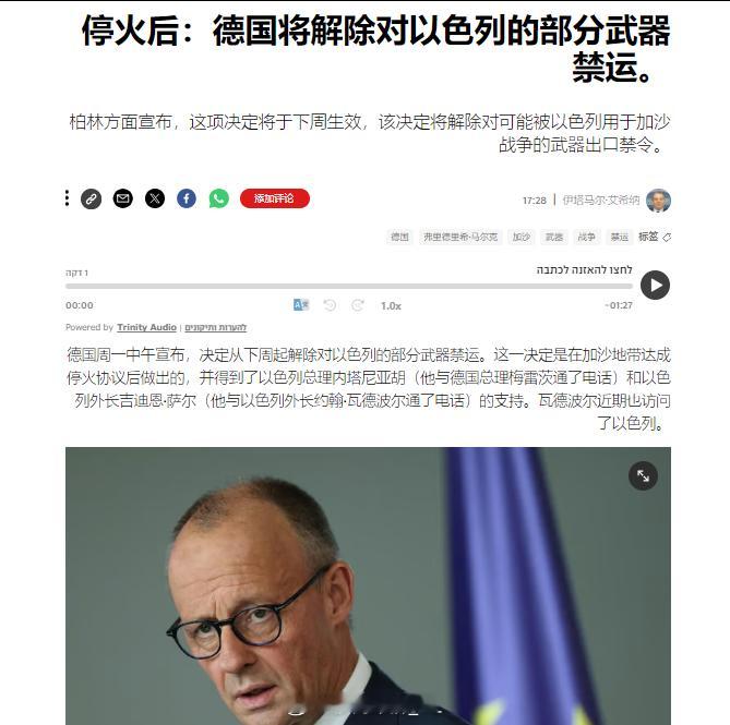 德国政府表示计划在下周解除对以色列的部分武器禁运。