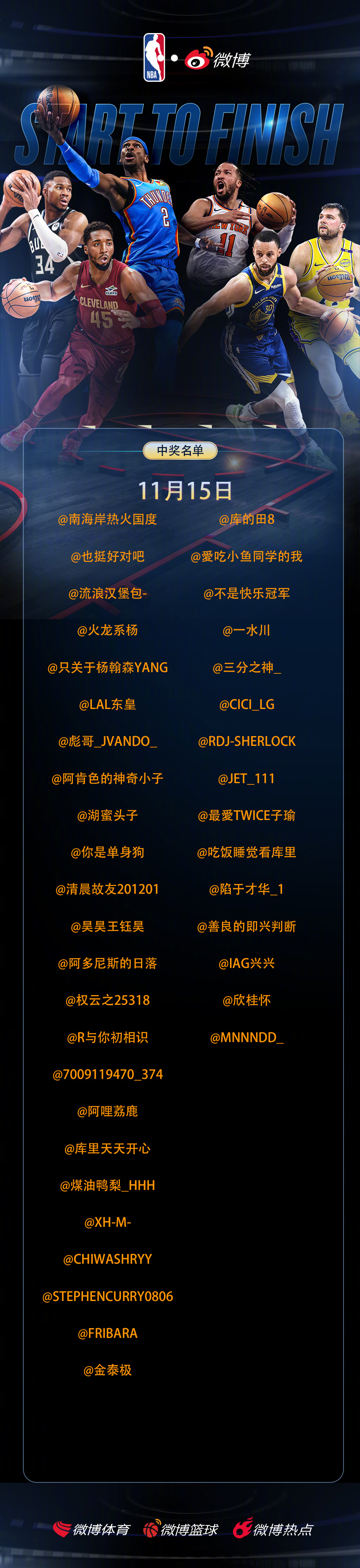 「 」11月15日中奖名单恭喜以下参与用户获得6.6🧧快来体验球员打分,下个幸运球迷就是你参与方式:比赛日进入任意NBA球队超话,球员打分+10字评论,获得抽奖资格!