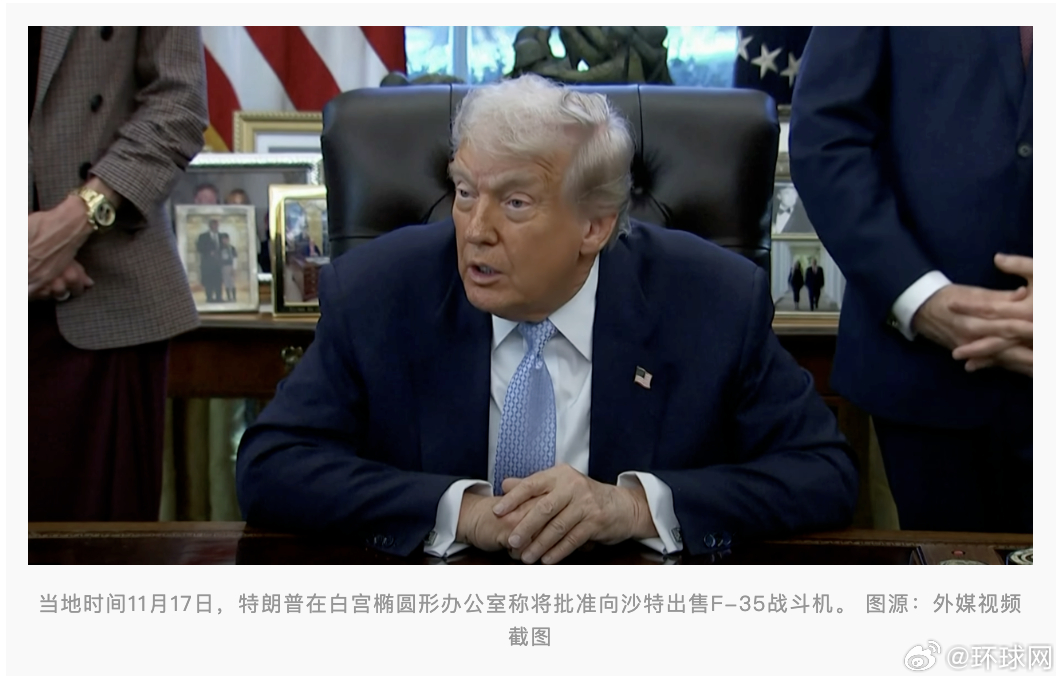 【“重大政策转变”!外媒:沙特王储访美前夕,特朗普称将批准向沙特出售F-35战机】据英国路透社、卡塔尔半岛电视台等媒体报道,美国总统特朗普当地时间17日表示,他将批准向沙特阿拉伯出售F-35隐形战斗机。报道提到,沙特王储兼首相穆罕默德·本·萨勒曼定于18日访美,特朗普将接待他,进行为期一天的外交行程。“我会说,我们会这么做,”特朗普在白宫椭圆形办公室对记者说,“我们会出售F-35战斗机。”半岛电视台表示,特朗普选择在穆罕默德·本·萨勒曼访问白宫前夕宣布这一消息,凸显了美国政府为深化与沙特关系而做出的努力。路透社则表示,此次军售将标志着一项“重大的政策转变”,可能会改变中东地区的军事平衡,并考验华盛顿对保持以色列“质量军事优势”的定义。半岛电视台称,一些以色列官员已经公开反对美国向沙特出售F-35战斗机。以色列民主党领导人亚伊尔·戈兰表示,此举有在中东引发“军备竞赛”的风险,从而削弱以色列保持了数十年的优势。以色列国家安全部长本-格维尔也表示,以色列必须保持其在该地区的空中优势。路透社还提到,美国国会的审查可能对任何向沙特出售F-35战斗机的提议构成挑战,有美国国会议员对深化与沙特的军事合作持谨慎态度。路透社本月4日曾透露,知情人士称,美国特朗普政府正在考虑沙特阿拉伯求购48架F-35战斗机的请求。报道称,沙特阿拉伯长期以来一直对F-35战斗机感兴趣,今年早些时候直接向特朗普发出求购申请。五角大楼目前正在权衡出售48架F-35战斗机的可能性。目前此案已提交至国防部部长层级。最终该军售案是否会被批准,还面临更多审批环节,包括内阁层面的进一步批准、特朗普的签署以及国会同意。路透社称,长期以来美国在向中东出口武器方面一直非常谨慎,以确保以色列始终能保持“质量军事优势”,即以色列总是能拿到比该地区阿拉伯国家更先进的美国武器。以色列空军的F-35战斗机早在近10年前就已成军,如今组建了多个中队,但目前该国仍然是唯一装备F-35战斗机的中东国家。相比之下,虽然沙特阿拉伯多年以来都是美国武器的最大海外客户,但美国对于向沙特阿拉伯出售先进战斗机非常谨慎。此前沙特已经多次向美国提出采购申请,但都因为“影响到以色列的军事装备技术优势”而遭到美国方面的否决。路透社称,沙特采购F-35战斗机还与美国在中东更广泛的外交努力交织在一起。此前美国拜登政府试图推动向沙特阿拉伯提供F-35战斗机,换取沙特与以色列实现关系正常化,但“这些努力最终陷入停滞”。