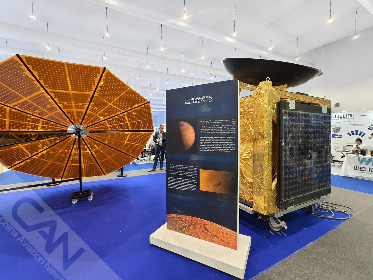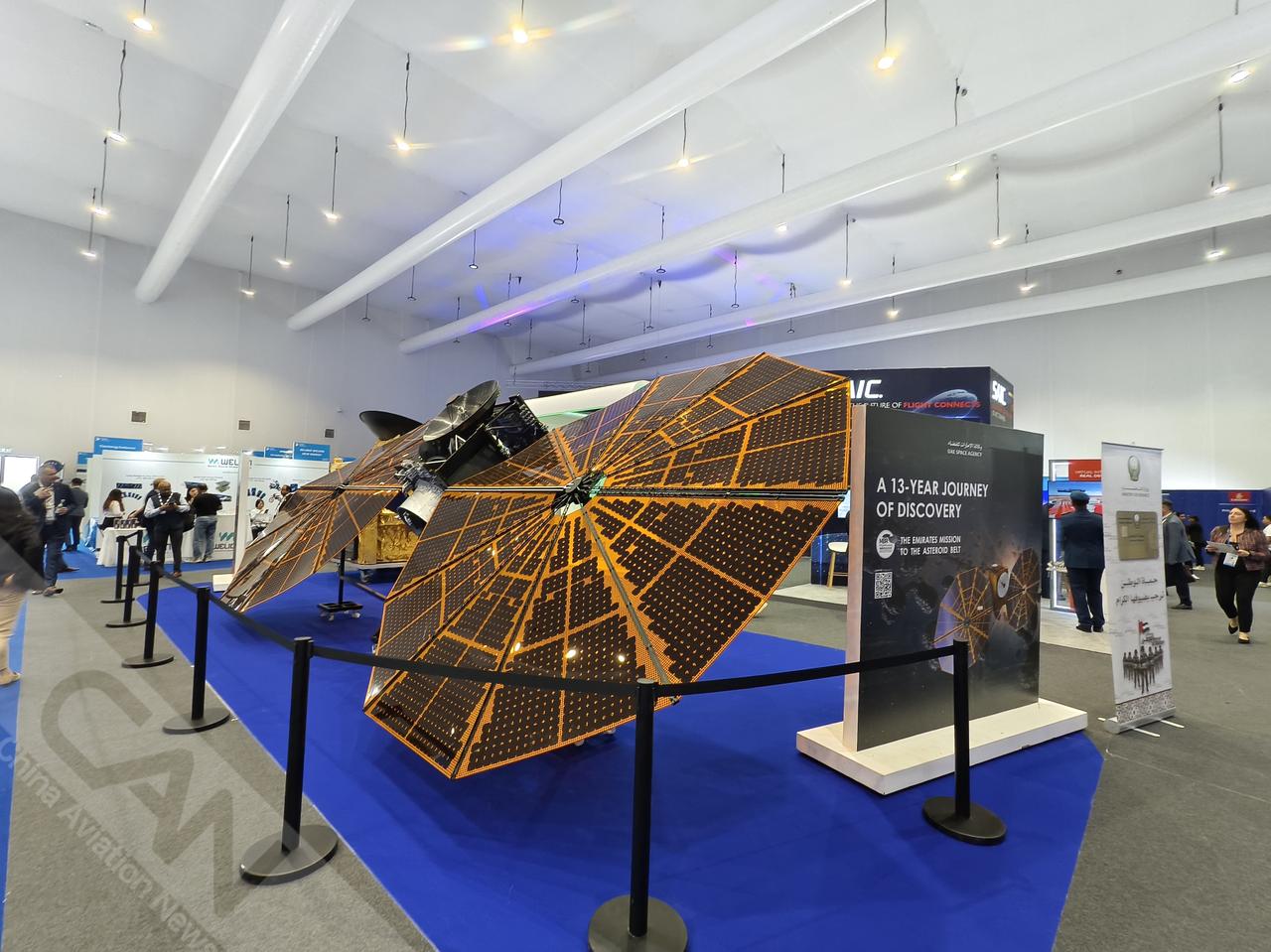 在迪拜航展上,阿联酋展示了最新的813号卫星和阿联酋小行星带探测任务,让太空和航空爱好者近距离了解了阿联酋的未来。(摄影:吴紫磨)