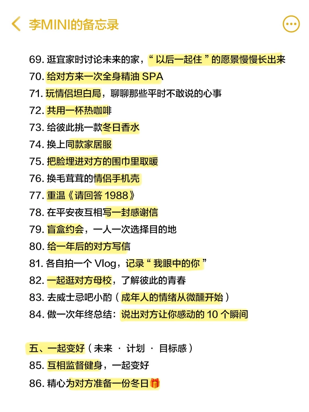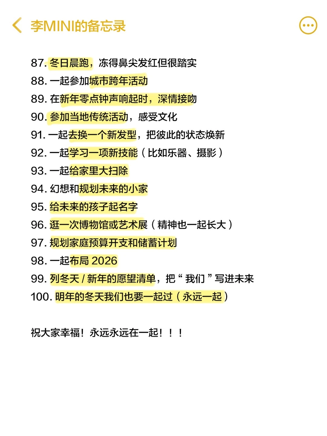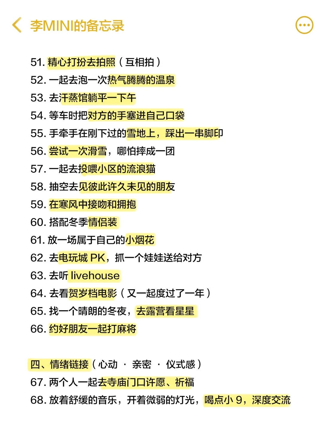 我总结了100个情侣冬天可以做的小事,涵盖一起宅家、吃美食、外出游玩、情绪链接、一起变好。