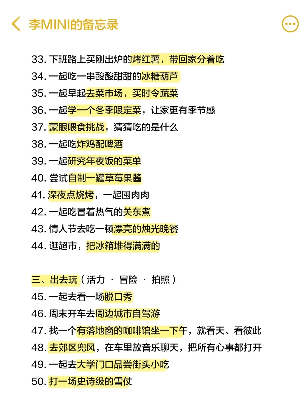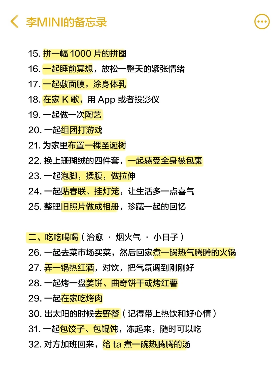 当你觉得生活有点疲惫、有点卡住、有点被现实耗空的时候,不妨打开这篇笔记,挑选一件去做。你会发现:喜欢真的能被放大,亲密可以被一点点堆起来。