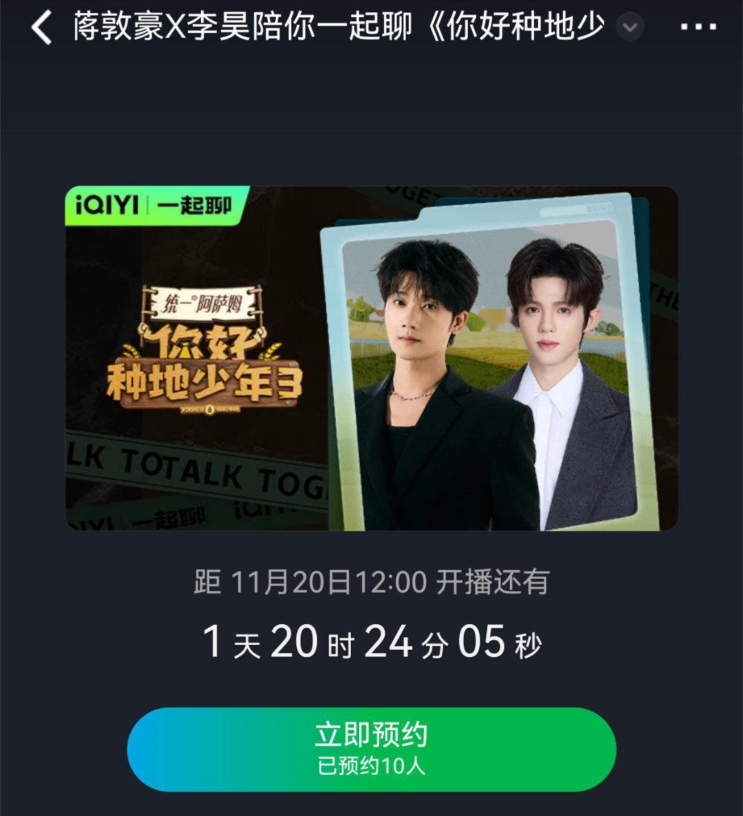 通知通知,你好种地少年3,第五期陪看名单:蒋敦豪➕李昊我是第🔟个预约的