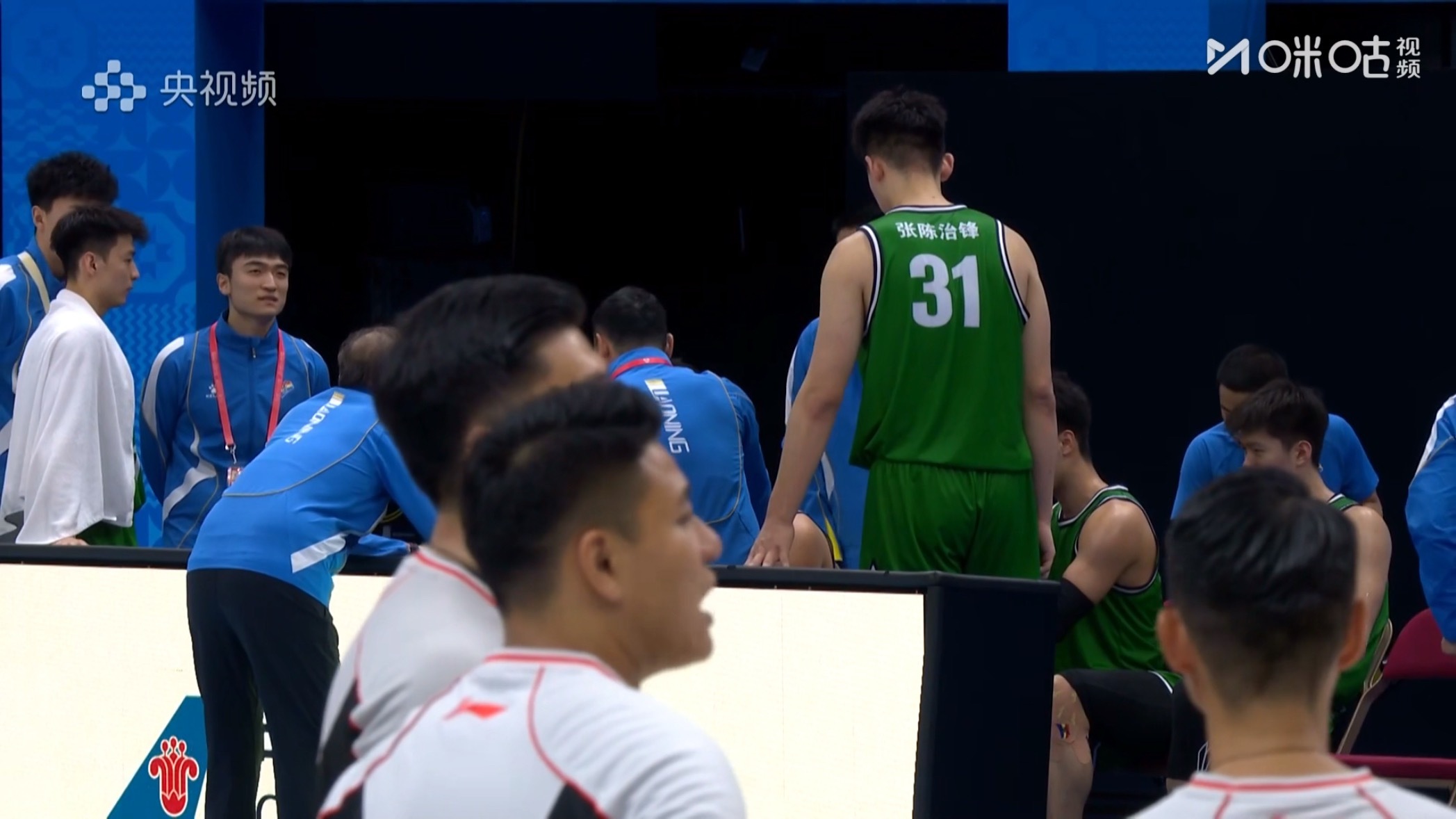 张陈被肘到脖颈处目前已经回更衣室辽宁队只剩6人可打