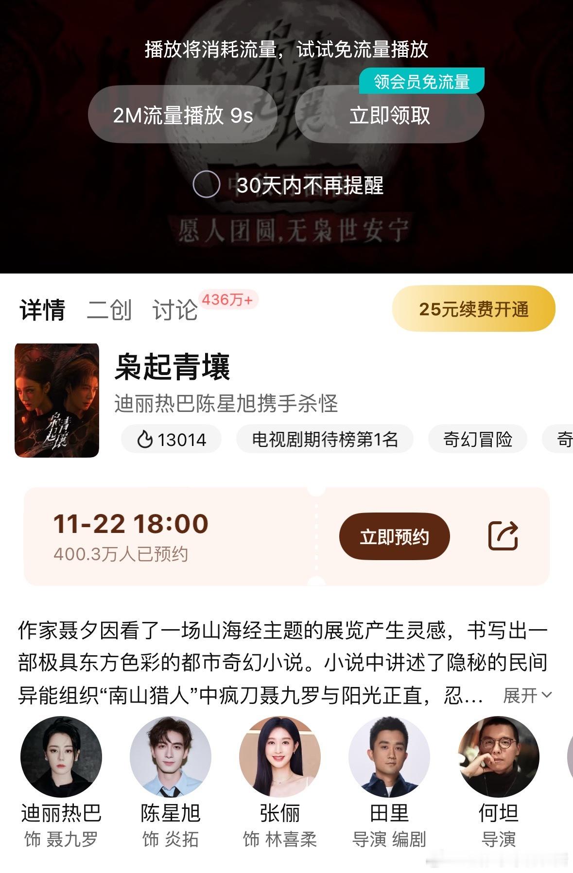 迪丽热巴陈星旭《枭起青壤》预约人数破400万啦🎉🎉福利有莫有