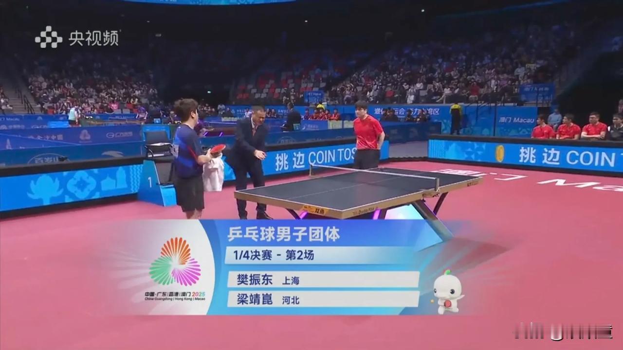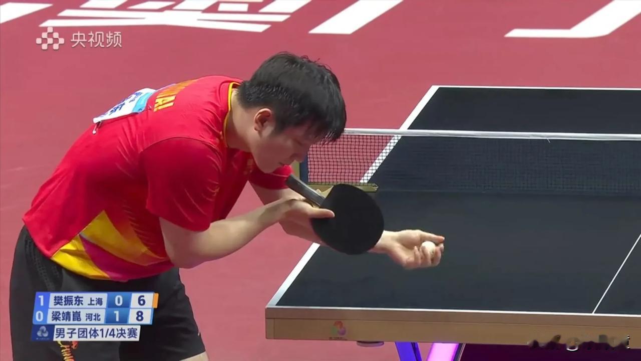 全运会,梁靖崑紧急收回一个巴掌! 樊振东与梁靖崑的这场比赛,还是非常精彩的,二人的相持,很有看点,表情也非常丰富,都把彼此表情包打出来了! 中间环节,梁靖崑失掉一个球,他本来准备扇自己一个巴掌,最后忍住了,摸了摸自己头! 这次比赛,梁靖崑发挥了百分之百,而樊振东有百分之九十五!