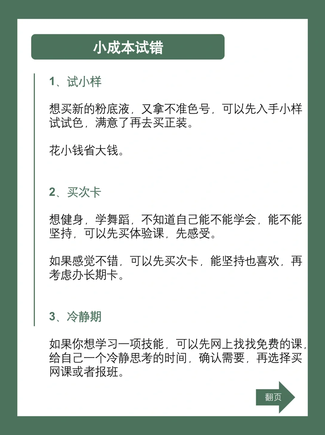 2⃣️不确定的大笔消费,先了解,先买次卡