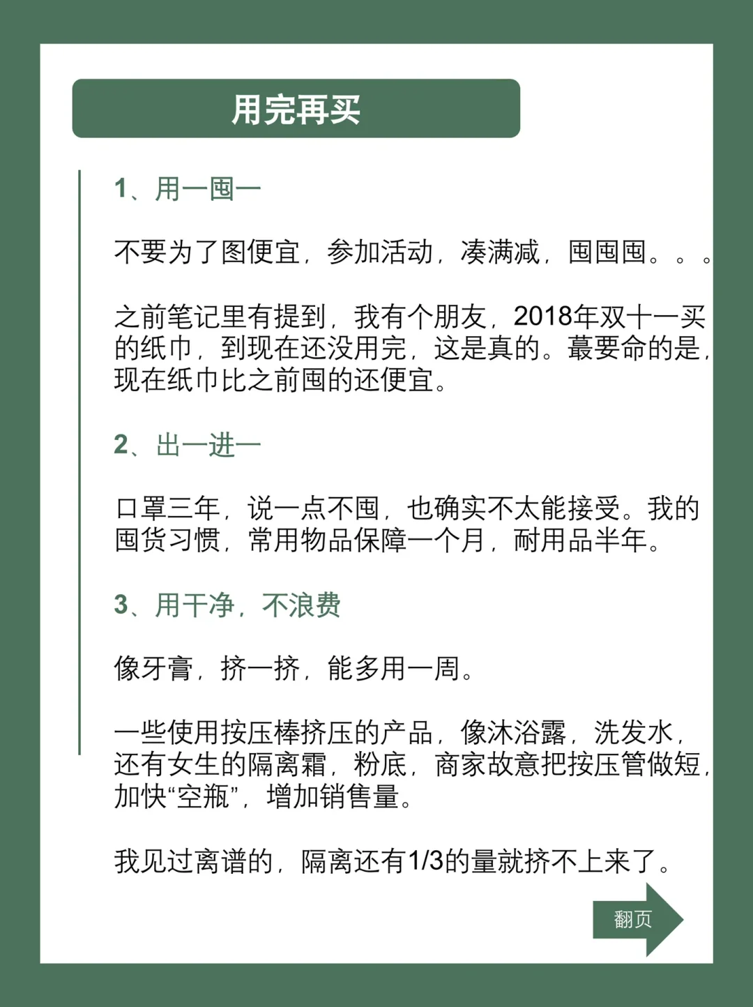 3⃣️用干净,不浪费