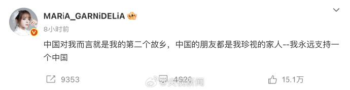今天,日本艺人美依礼芽、矢野浩二相继发微博表示:“永远支持一个中国。”美依