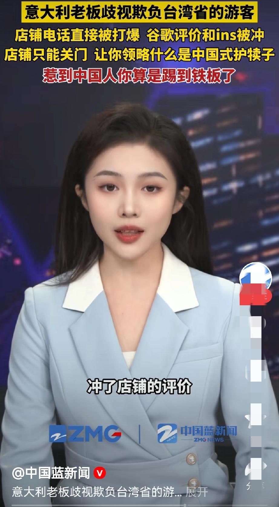 前两天,16名中国台湾的游客在意大利买五个披萨被老板发视频歧视的事情,引发了大量华人对该饭店的举报,很多人评论说,人家台湾人不一定领情,但这个事情我觉得是这样的,你认不认我是你哥是一回事,但是在外面,你被别人骂了,我死活得上去给那家伙一巴掌!