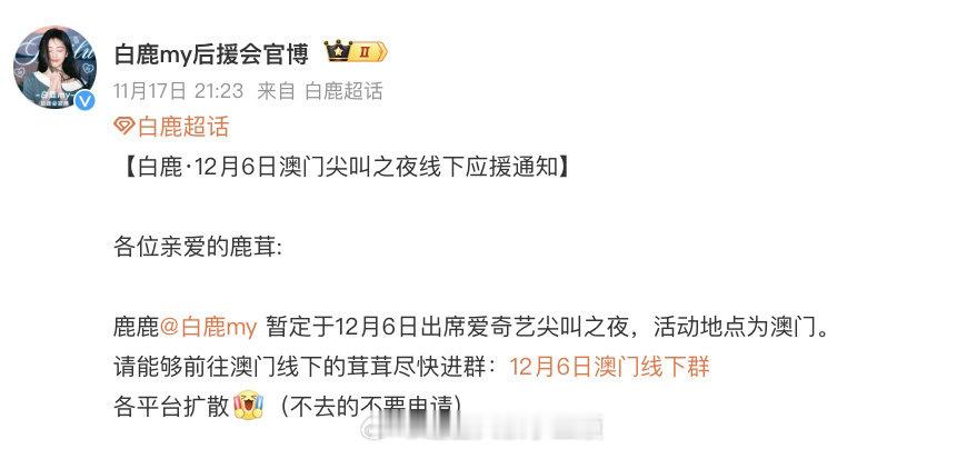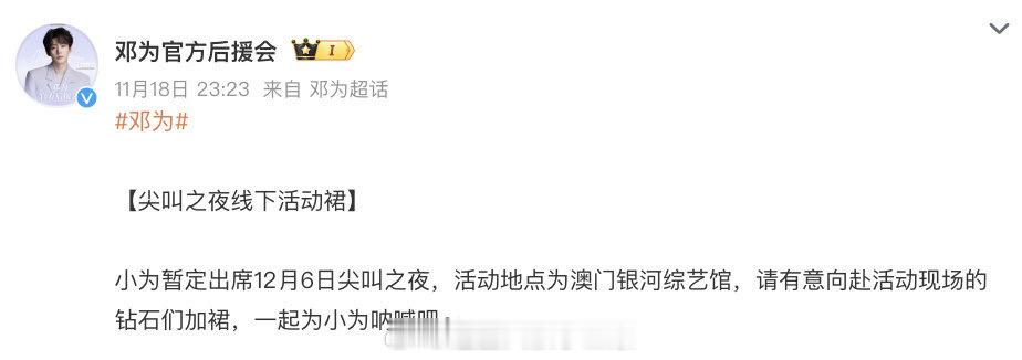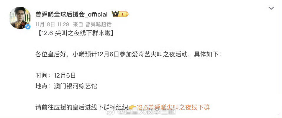 尖叫女神来啦爱奇艺12月6日澳门尖叫之夜嘉宾:【已通知】白鹿、祝绪丹、曾舜晞、张