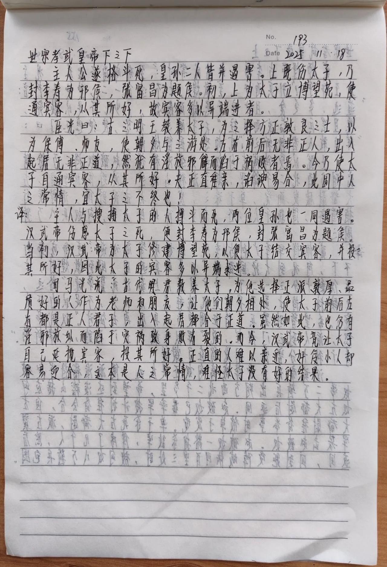 看帝王权谋,抄《资治通鉴》第193天。 主人与围捕太子的人搏斗而死,两个皇孙也被杀死。 当初汉武帝给太子修建博望苑,让太子结交宾客。司马光说:古代明君教养太子,会为他选择正派敦厚人品好的人作为他的老师和朋友,即使如此,也会出现淫邪放纵导致陷于灾祸而身败名裂的;如今汉武帝却让太子自己结交宾客,而正直的人难以亲近、奸佞的人容易迎合是人之常情,难怪太子得不到好的结果啊。