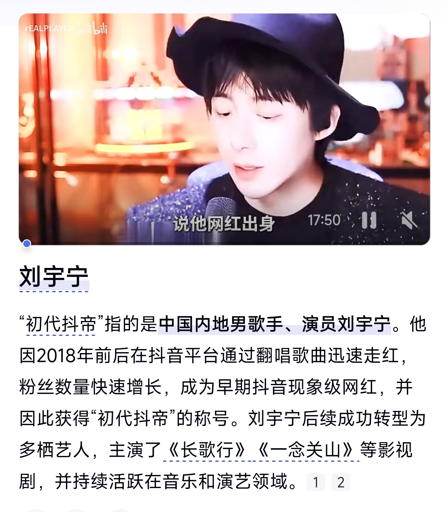 刘宇宁是“初代抖帝”,意思是,论资排辈儿,刘宇宁第一呗。