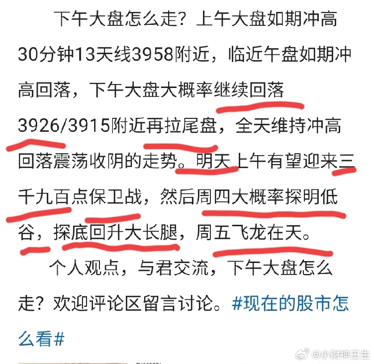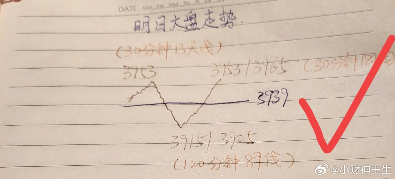 如期宽幅震荡,明天大盘怎么走? 大盘早盘如期冲高回落,午后如期探底回升,全天维持宽幅震荡,a50期货午后异动拉升,银行,保险大幅拉升成为护盘主力军,大科技和题材小幅收涨涨幅居前,游戏,传媒等领跌两市。两市下跌家数超四千家,但是,市场情绪午后明显回暖。明天大盘怎么走? 从三大指数全天表现来看,三大指数均走出了探底回升的走势,上证指数和创业板小幅收涨,科创板小幅收跌。两市成交总额1.6万亿,同比缩量两千余亿,从量价关系来看,市场今天属于缩量上涨,缩量上涨上涨空间有限。 从全天市场表现来看,今天市场风格属于银行起中小盘落的格局,上证指数和创业板虽然如期反弹,但是,市场盘中下跌家数超四千家,吃草行情还是比较明显的。但是,军工今天逆势拉升,涨势喜人,方向选对,逆势吃肉。 明天大盘怎么走?大盘上午如期冲高回落,午后回踩3926附近后探底回升继续冲高30分钟趋势线后冲高回落,明天大盘继续探底3915附近后探底回升是大概率事件。目前大盘从30分钟看,开始震荡筑底,探底就会回升,冲高就会回落。具体走势晚上文章分享,敬请期待。