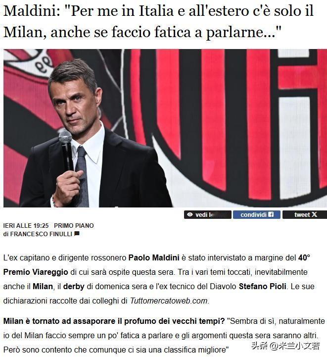 马尔蒂尼!米兰永远的队长马尔蒂尼接受采访表示我不清楚关于我的传闻,对于我而言,无论是国外还是意大利只有一支球队,我的生命一直都属于这支球队。 马尔蒂尼本次采访是他最近半年首次接受采访,与之前相同队长拒绝回应关于米兰的问题,本次采访与之前相同当不得不提米兰的时候也不会提到米兰两个字,我相信很多人都能正向理解队长的行为,我只说个人的想法,作为球员马尔蒂尼在后卫这个位置一直都是最佳第一人选,作为经理他为米兰带回了久违的米兰精神与冠军,我不知道队长还要怎么做才能令喷子满意。 米兰有过很多位传奇球员,意大利的金童里维拉、意大利最好的清道夫巴雷西,荷兰的三剑客巴斯滕、古力特、里杰卡尔德等等,就不赘述了,米兰的传奇实在太多了,但这些传奇只是我听说过的红黑传奇,马尔蒂尼是我看过的红黑传奇,我从看到马尔蒂尼就成为了队长的人迷,同时爱上了米兰,个人会一直等待队长回归米兰,回归他生命归属的球队。