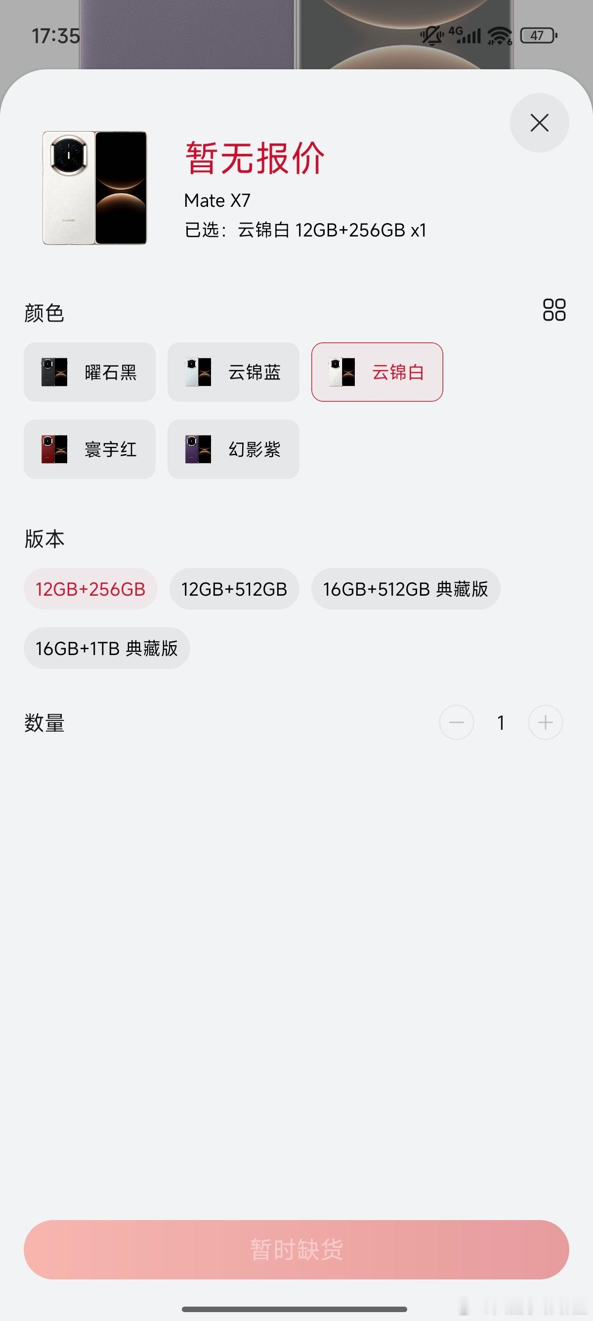好家伙,华为Mate X7今天开始预定,12+256GB版本直接缺货了,5个颜色都没了,明天再试试抢512GB的有小伙伴今天定到了吗?