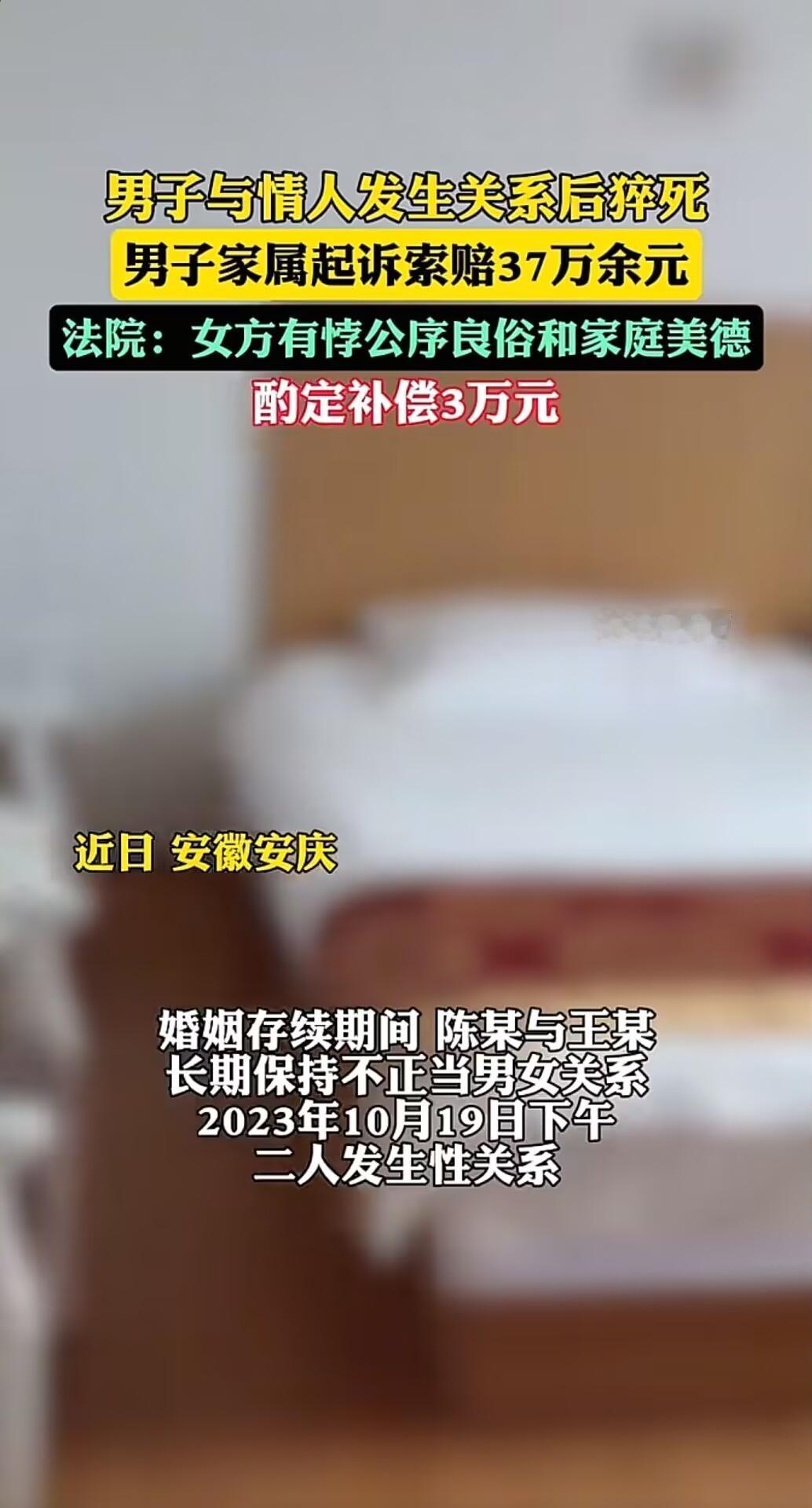 背叛婚姻还赔上命!已婚男跟情人同居猝死,老婆索赔37万!法院判仅赔3万? 已婚男人陈某放着自家老婆不管,跟情人王某在外非法同居,结果陈某生病输液后没多久猝死了。老婆又痛又气,把王某告上法庭要37万赔偿,最后法院没支持大额索赔,只判王某给3万精神损害抚慰金这结果,我觉得既合情又合法,可一想到那老婆的遭遇,就忍不住替她难过。 你说这老婆招谁惹谁了?丈夫背着她搞婚外情,最后人没了,她不仅要扛丧夫之痛,还得忍受丈夫背叛的羞辱,双重打击搁谁身上都扛不住!她告王某要赔偿,哪里是图钱,分明是咽不下这口气:要不是王某明知陈某有家室,还硬凑上去同居,好好的家能散吗?陈某能在外面出这种事吗? 但法律终究讲证据,没有实打实的证据证明王某直接导致陈某猝死 , 陈某本身就有旧病,还一直在吃药,猝死是自身健康问题。可法院也没饶过王某的缺德:明知别人已婚还长期同居,这事儿严重违背公序良俗,给家属造成的精神伤害实打实!3 万不多,却既是对王某不道德行为的惩戒,也是给受了天大委屈的老婆一点安慰。 再说陈某,自己有家有室却背叛婚姻,把好好的日子搅得稀烂,最后把命也搭进去,不仅害了自己,更毁了老婆的后半辈子,太不负责任!王某也一样,明知道是别人的丈夫还纠缠不休,破坏别人家庭,就算不用赔37万,这道德污点一辈子也洗不掉。 婚姻的底线是忠诚,公序良俗更是不能碰的红线。这判决既没让缺德的人全身而退,也没让证据不足的索赔成立,既守住了法律的公平,也没丢了道德的底线。说到底婚外情害人害己,别以为一时快活没人管,法律不纵容,道德更不饶人。那些背叛婚姻、破坏别人家庭的人,迟早要为自己的行为买单!大家对此事怎么看? 情感 婚外情猝死 婚内致死案 婚姻