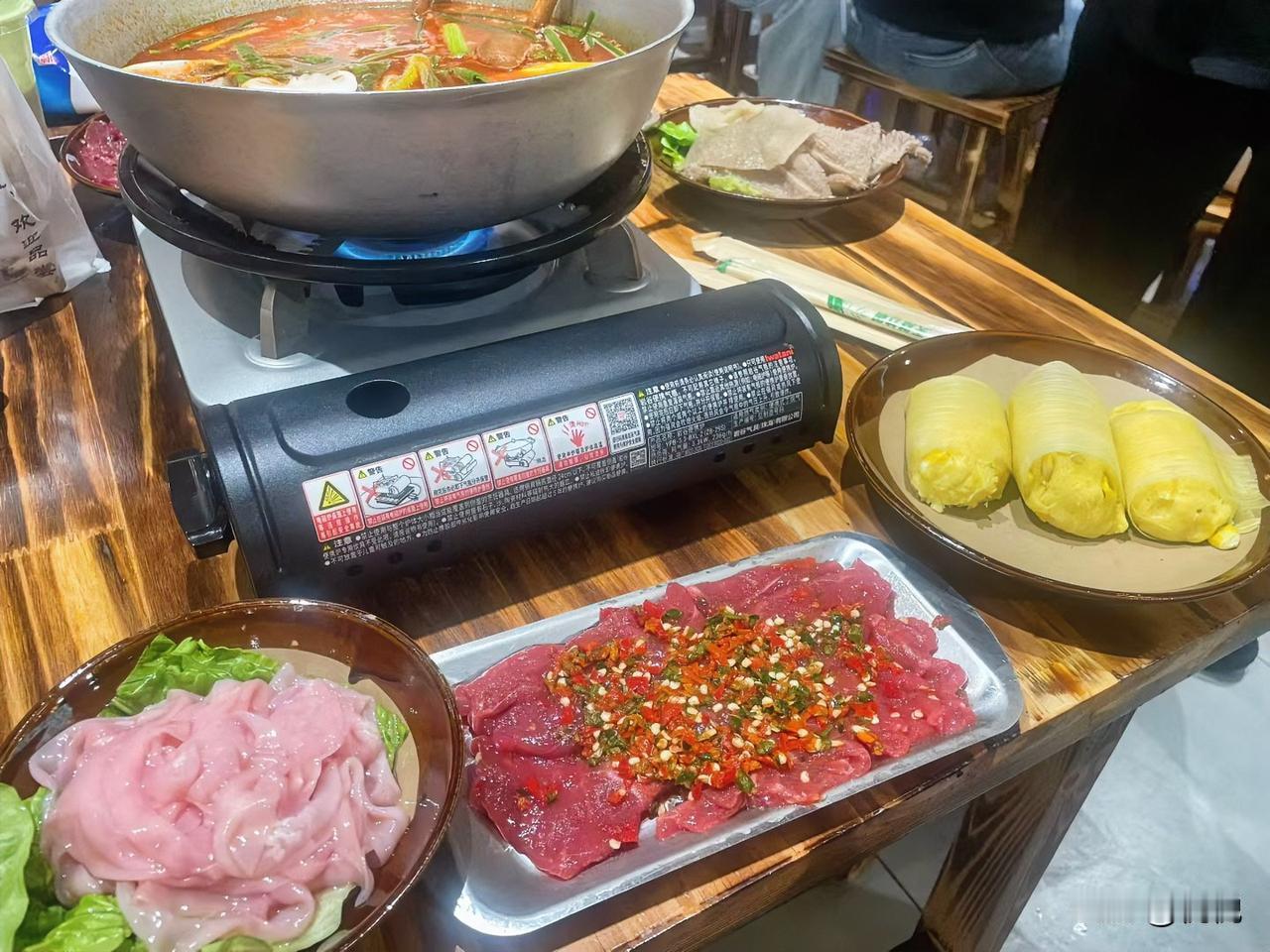 今天这顿火锅可太对味了! 小炉子支棱起来,红汤咕嘟咕嘟直冒香。菜一上桌眼睛都亮了——裹满剁椒的嫩牛肉、滑溜溜的猪脑花,还有那卷着玉米的笋子,每样都戳中我胃。筷子刚伸过去,朋友就催着“快下快下”,这热乎劲儿,一口下去直接给冬天暖透了,幸福也就这回事儿吧!