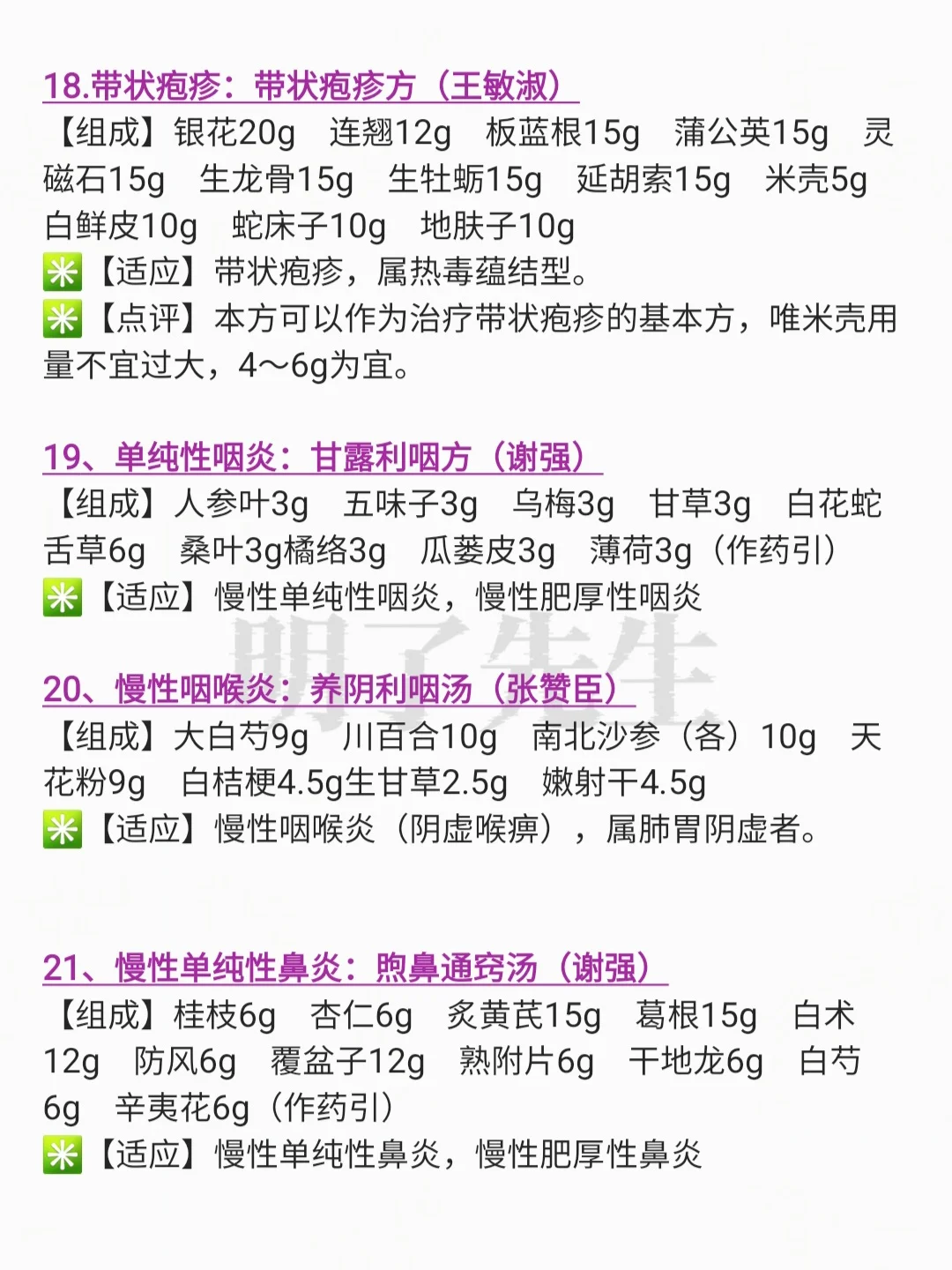 ⚠️声明:本篇文章内容为本人的学习笔记,笔记内容仅供理论层面参考、学习,本文所提供的方剂不具备普适性,中医需辨证论治,请在专业人士的指导下进行合理合法的诊治, 请勿试方试药,本篇内容非诊疗建议❗ ⚠️此篇笔记旨在传播中医,为了使笔记一目了然,笔记内容只归纳核心内容,无详细辩证及方解,仅仅作为抛砖引玉之用,若想详细了解,可以根据提供的线索追根溯源,细细研究,定会收获量良多❗ ⚠️将前辈的验方收集起来,站在前辈的肩膀上,会看的更远,希望这些理法方药可以激发学习者的思维,传承、振兴中医❗