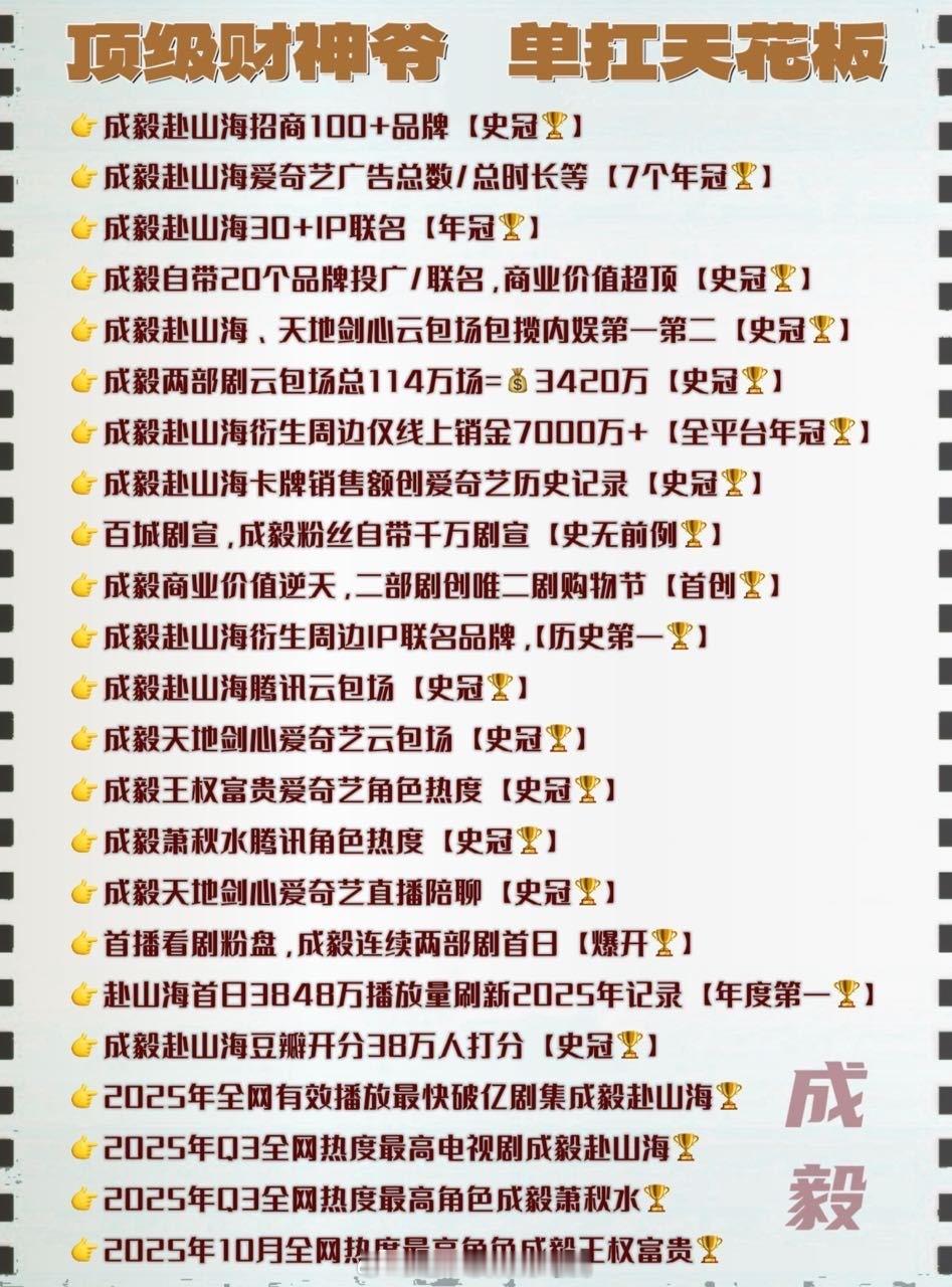 成毅顶级财神爷🔥内娱唯一一个联播剧能赚爆到霸屏平台财报所有营收版块的!