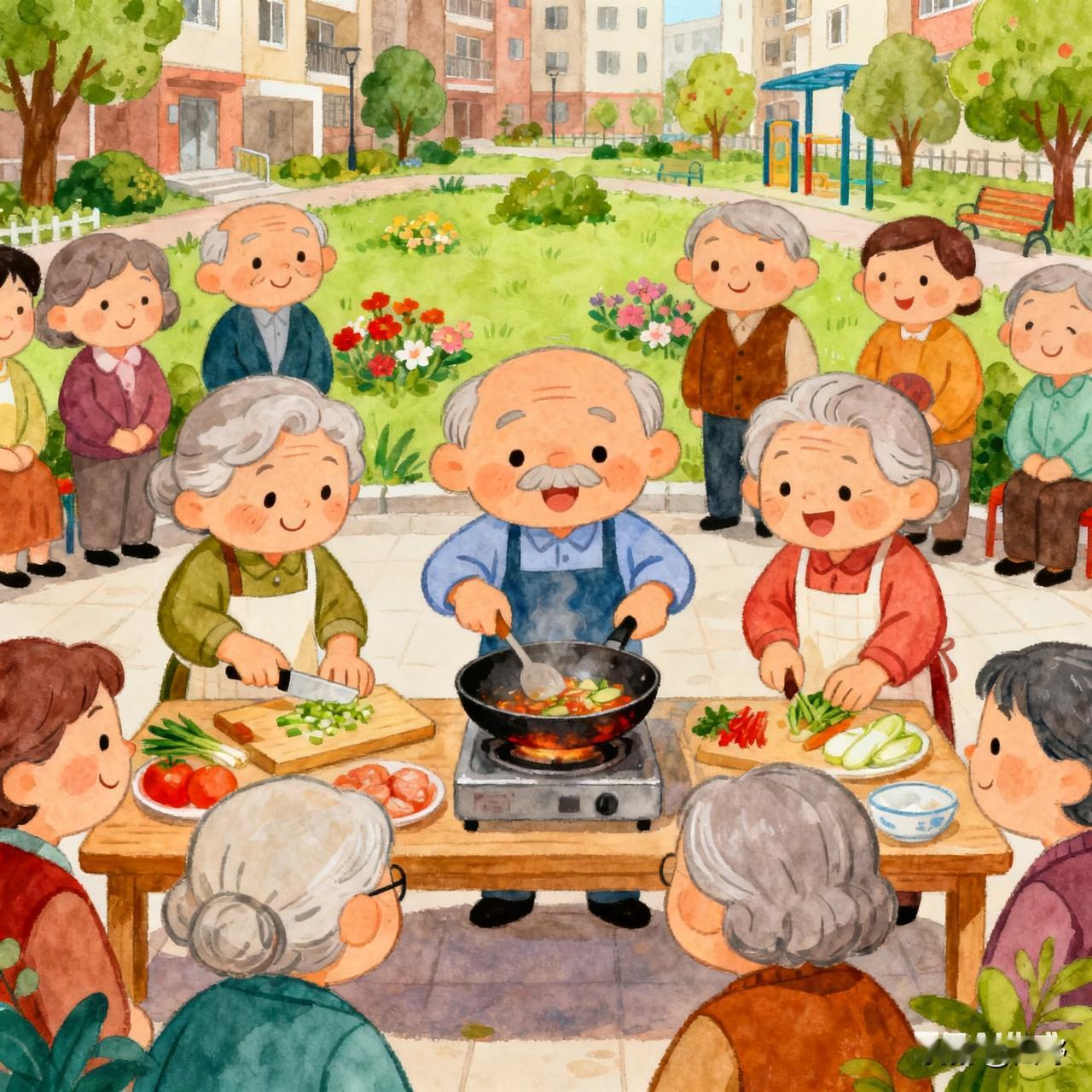 《老李头的“金牌”》 我们小区的老李头,退休前是厂里的会计,一辈子跟算盘打交道,为人那叫一个仔细。退休后,这“仔细”就全用在了跟老伴儿王大妈“斗智斗勇”上。王大妈嫌他买菜不会砍价,蒸个馒头不是碱大就是碱小,总之是“百无一用是书生”。 老李头心里憋着一股劲儿,总想干点啥证明自己“宝刀未老”。 机会来了。社区通知要举办“夕阳红厨艺大赛”,一等奖1是个金光闪闪的、巴掌大的奖牌。老李头一看,眼睛亮了,心里的小算盘噼里啪啦一打:这辈子没拿过什么“金牌”,临了临了,非得把这个遗憾补上! 他瞒着王大妈,偷偷报了名,参赛项目:葱花饼。为啥是葱花饼?用他的话说:“越是家常的,越见真功夫!” 从此,老李头开始了他的“秘密行动”。每天王大妈出去跳广场舞,就成了他的“实战演练”时间。厨房成了他的实验室,面粉、葱花摆了一溜。 头一回,饼硬得能当砖头,孙子拿着敲着玩,说像快板。第二回,咸得齁嗓子,只好自己灌下去三杯水。第三回,火候没掌握好,一面糊了一面生。 王大妈回家总闻到一股怪味,问他:“老李,你又在厨房鼓捣啥呢?”老李头扶扶老花镜,故作镇定:“没啥,研究一下……科学膳食。” 比赛那天,老李头提着自家那口用了十几年的黑铁锅,雄赳赳地去了。台上,别的老头老太太都是红烧肉、清蒸鱼,只有他,守着个小锅摊饼。 评委都是街坊邻居,走到他跟前,他正好起锅。只见那饼,金黄透亮,层层分明,翠绿的葱花点缀其间,香气直往人鼻子里钻。 社区主任尝了一口,竖起大拇指:“嘿!老李,你这饼,有小时候我奶奶做的那个味儿!” 结果毫无悬念,老李头捧回了那个他心心念念的“金牌”。他挂在脖子上,一路走,那“金牌”就在胸前晃荡,阳光一照,还真有点晃眼。 回到家,他把“金牌”往王大妈面前一放,胸脯挺得老高。王大妈拿起“金牌”,掂量了一下,又看了看老李头那期待表扬的脸,“噗嗤”笑了:“你个老东西,折腾半个月,就为这塑料片子?不过嘛……”她又咬了一口老李头带回来的饼,点点头,“这饼,确实摊得不赖,以后咱家早饭你包了!” 老李头嘿嘿直乐,摩挲着他的“金牌”,对老伴说:“你懂啥?人生嘛,总得有点拿得出手的‘战绩’,不然以后跟那帮老家伙下棋,拿啥吹牛?再说了,”他压低声音,“这‘金牌’是塑料的,可这摊饼的手艺,可是真金不怕火炼!” 从此,老李头在小区里有了新外号——“饼大爷”。他的遗憾补上了,谈资也有了,连带着,家里早餐的花样也丰富了起来。老人故事 社区故事 退休老李