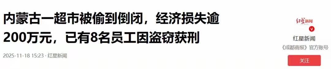墙倒众人推,店败因内盗。一家经营不到一年的超市,被“自己人”偷到关门。不是外贼,而是收银员、理货员、店长、供货商,还有员工的亲属。 账目亏空、系统被改、商品变价、货物出走,经营者最后一算账,亏了200多万元。这不是段子,而是发生在内蒙古锡林郭勒盟的一起真实事件。 墙倒众人推,店败因内盗。一家经营不到一年的超市,被“自己人”偷到关门。不是外贼,而是收银员、理货员、店长、供货商,还有员工的亲属。 账目亏空、系统被改、商品变价、货物出走,经营者最后一算账,亏了200多万元。这不是段子,而是发生在内蒙古锡林郭勒盟的一起真实事件。这个故事看似普通,却深刻折射出一个社会难题:在信任与防备之间,我们到底失去了什么? 很多人会觉得,店铺的内部“人鬼难辨”,是不是太过悲观?但细想,这背后隐藏的,是人性的复杂和社会管理的盲区。我们一方面信任员工,给予他们工作机会,另一方面却忽视了“人性”的弱点。结果,信任变成了放松警惕的借口,最后酿成一场“内部自伤”的悲剧。 更令人心痛的是,这起事件让我们反思:在追求快速发展的同时,我们是否也在放松对“人心”的警惕?一个企业的兴衰,除了市场和管理,更关乎底线和人性。很多时候,一点点的贪欲,就能侵蚀掉企业的根基。就像这家超市,原本或许只是“贪小便宜”的一时冲动,却逐步撕裂了所有的信任。 这场悲剧,也让我们看到“防范”不应只停留在表面。企业管理者需要更科学的制度、更严密的监控,也需要在员工管理中加入更多人性的关怀和教育。毕竟,没有谁愿意在信任的基础上被背叛,但如果不设防,等待的可能就是“墙倒众人推”。 更深一层,或许我们每个人都在这场社会剧中扮演着角色。我们对“内部人”的信任,是善意的体现,但也可能成为危险的源头。反思一下自己,是否也曾因为“熟人关系”而放松了警惕?或许,这样的故事,是在提醒我们:在不断变革的社会中,唯有“守住底线”,才能真正走得长远。 这起事件的背后,不仅仅是一起经济案件,更是一面镜子,映照出我们每个人的价值观和人生观。我们都希望社会更加美好、企业更加繁荣,但这需要每个人的良知和责任感来共同守护。否则,再多的制度设计,也无法弥补人性中的漏洞。 在未来,或许我们都要学会在信任中保持警觉,在合作中把控风险。毕竟,没有人能永远站在“安全”的高地,但只要我们心中有底线,就能在风雨中稳步前行。这个故事,或许让你愤怒,也让你沉思,但更希望它能成为我们每个人心中的一记警钟——守住底线,才能守住未来。超市衰败 公司盗窃 超市内鬼偷垮超市