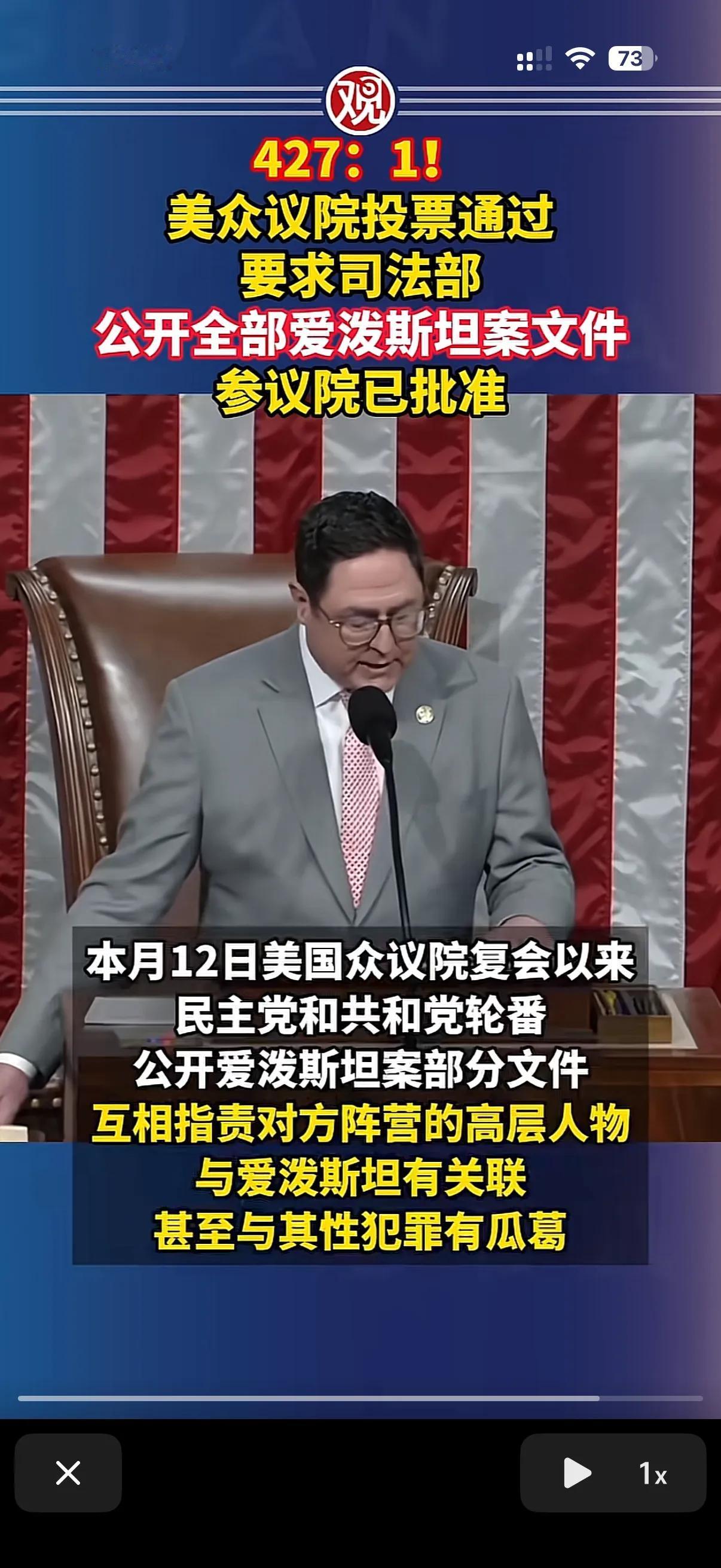 爱泼斯坦一案的具体名单公布已经只是时间问题了! 现在特朗普已经批准公布爱泼斯坦案的名单了,之前无论是民主党还是共和党其实手里都有一部分名单,但是两党公布这些都是为了打击竞争对手! 但是民众关心的到底谁参与了这些,谁参与了没有得到审判! 日前不断有记者当面提问特朗普为什么不公布爱泼斯坦案的名单,甚至还有人不断询问特朗普知不知道网上关于他最近的爱博斯坦传闻! 美国众议员已经投票通过了公开爱泼斯坦案名单了就是不知道这份名单还有几分真实性了!