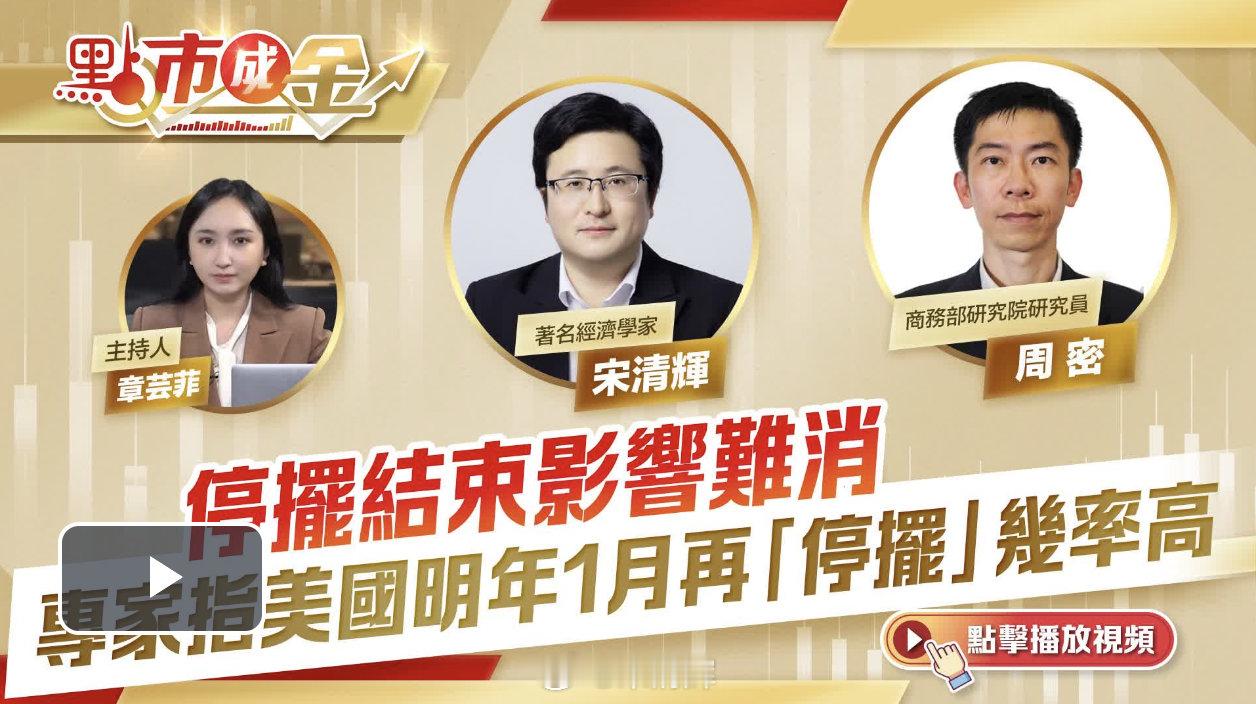 【點市成金|停擺結束影響難消 專家指美國明年1月再「停擺」幾率高】(點新聞報道)著名經濟學家宋清輝認為,這次停擺雖然不會引發系統性的衰退,但卻暴露了美國財政治理的結構性失靈。他認為本次停擺對經濟活動的影響也是線性累加的。政府服務中斷,消費信心受損,企業投資延後等這些因素,都可能會對Q4GDP增速造成大約0.1到0.3左右的負面拖累。另外,本次結束停擺所通過的《持續撥款與延期法案》僅將大部分聯邦機構資金延至2026年1月30日,屬於過渡方案,還有9項年度預算尚未敲定。宋清輝形容當前解決方案「相當於止血而非治病」。同時,由於美國明年將進入中期選舉年,預算博弈也進入高峰期,政治風險升高,美國政府於明年1月底再次停擺風險較高。考慮到此因素,宋清輝呼籲投資者將美國政府周性停擺風險視為一種常態化的政治風險,並在投資組合中進行配置。一方面增加黃金、高利率美國國債以及美元現金配置的比例;另外一方面,可以考慮減少對單一市場的依賴,增加全球資產的配置,尤其是關注強勁的新興市場和非美發達市場,以對沖美國政治的風險。(採訪:倪巍晨、朱燁|編輯:楊楚依、章芸菲|主持:章芸菲|視頻拍攝及製作:王一)