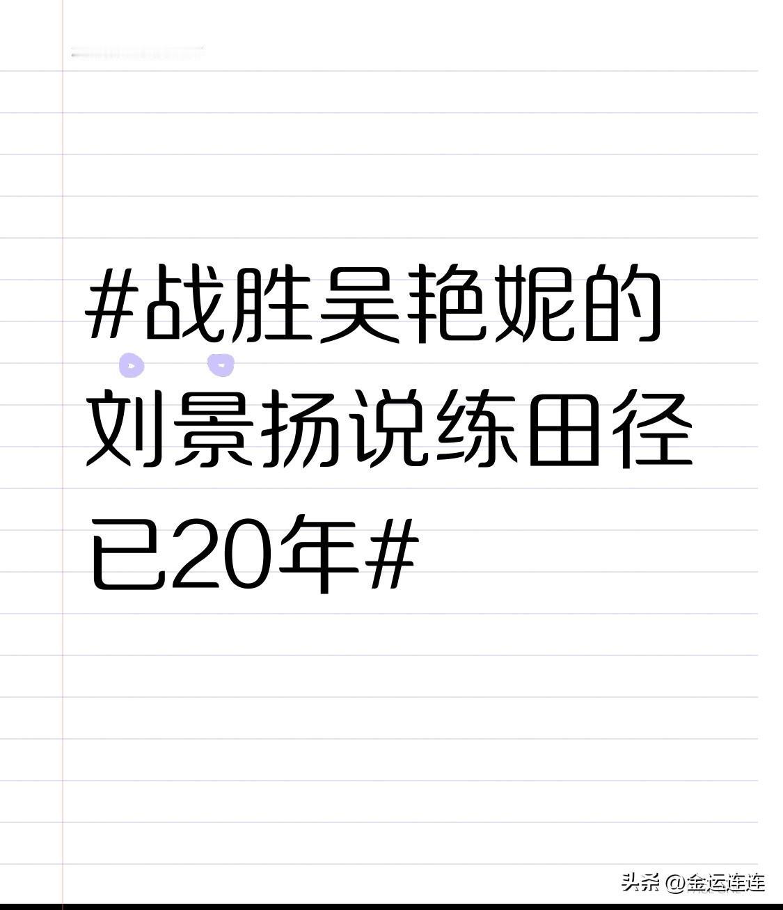 战胜吴艳妮的刘景扬说练田径已20年 11月19日全运会女子100米栏决赛太有看头了!广东队刘景扬以12秒81夺冠,战胜了赛前志在夺金的吴艳妮,吴艳妮12秒85拿了银牌,赛后还遗憾落泪。刘景扬赛后那叫一个激动,说自己练田径都20年了,三次全运会,前两次连决赛都没进。这次妈妈从珠海来看她比赛,夺冠也算是圆了妈妈的心愿。她还说自己不是“黑马”,夺冠是努力的回报,这话没毛病,竞技体育本来就容不得侥幸。吴艳妮给自己打0分,说比赛细节没处理好,接下来打算先休息。只能说,比赛就是这样,有遗憾也有惊喜。