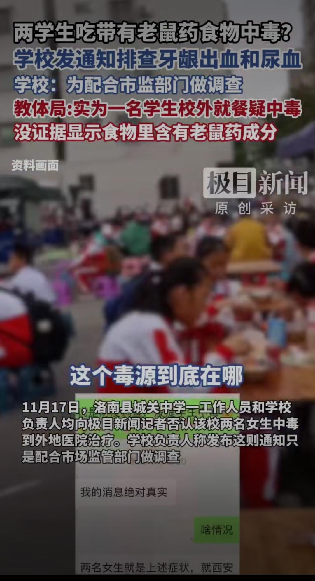 一场突如其来的食物中毒事件,让整个校园瞬间陷入了紧张与焦虑。两名学生在吃完学校提供的餐食后,出现了牙龈出血和尿血的严重症状。这不仅仅是一次普通的食物不适,而像是一场隐藏在平静表面下的危机,让人心头一紧。学校迅速发出通知,要求全校排查,甚至连学生的牙龈出血和尿血都被列入重点关注对象,似乎暗示着事态的严重性。中毒症状 然而,事情的真相似乎比表面复杂得多。学校方面表示,为了配合市监部门的调查,正在进行全面排查。教体局也出来辟谣,强调“实为一名学生在校外就餐疑似中毒”,并明确指出目前没有证据显示食物中含有老鼠药成分。这一声明像一块石头扔进了平静的湖面,也引发了公众的广泛讨论:真的是食物中毒,还是有人故意制造恐慌?又或者,这背后隐藏着更深层次的隐情? 令人心疼的是,两个学生的身体状况引发了社会的担忧。牙龈出血、尿血,这些症状都指向身体的严重异常。面对未知的威胁,家长们焦急不已,学校和相关部门也在紧急行动。可是,为什么会出现这样的情况?是食物本身的问题,还是某些人为的阴谋?公众的疑问在空气中弥漫,期待着真相的揭晓。 从更深层次看,这次事件折射出的是校园安全管理的盲点。学校作为学生的第二个家,理应提供一个安全、健康的环境。然而,突发的“疑似中毒”事件提醒我们,校园安全不仅仅是硬件设施,更关系到食品安全、心理健康和应急反应能力。每一次危机,都是对教育体系的一次考验,也是一面镜子,映照出我们在细节上的疏漏。 同时,这件事也引发了公众对食品安全的关注。我们每天都在享用各种餐食,却很少去深究背后的供应链和监管机制。有人说,食品安全关系到每个人的生命健康,绝不能掉以轻心。更有人质疑:如果真有人在食物中投放老鼠药,背后隐藏的动机又是什么?是恶意报复,还是某种阴谋?这些疑问都在提醒我们,食品安全不仅仅是政府的责任,更是每个消费者的权利。 面对这场“疑似中毒”事件,公众的情绪复杂而激烈。有人呼吁彻查到底,有人担心恐慌扩散,更有人在反思:我们是否真正建立起了一套完善的食品安全保障体系?我们是否足够关注身边的细节?每一次危机,都是一次反思的契机,也是一场全民安全意识的觉醒。 如果你也对这次事件充满关注,或者有自己的看法,欢迎留言分享。因为,只有共同关注、理性分析,我们才能让校园变得更安全,让每一个孩子都能在阳光下健康成长。毕竟,安全无小事,守护每一份纯真的笑脸,是我们共同的责任。