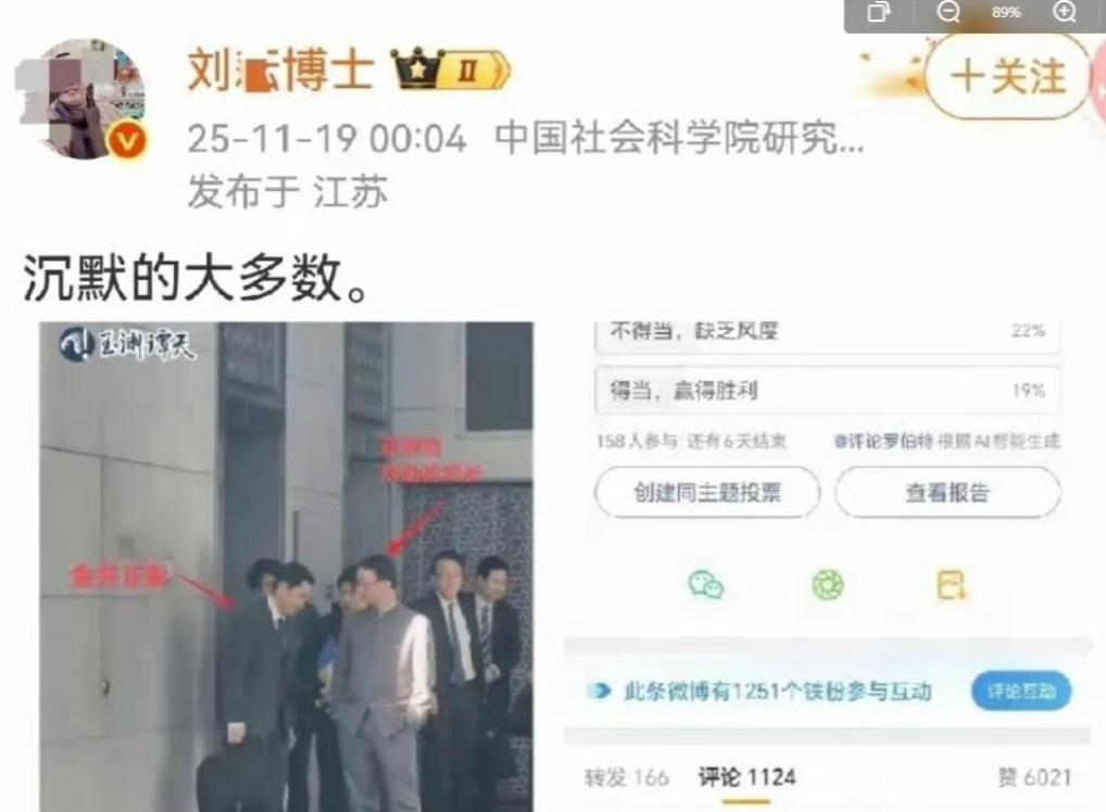这家伙是社科院的? 所以,社科院养这么个东西是用来干嘛的? 图片里两个人的姿态,要调换过来他才满意?那革命先辈和14亿不断努力的意义,在哪里?就是为了“卑躬屈膝”吗? 网上有些所谓文明人,正如“拘小节而无大义”“知小礼而无大德”!50岁左右的文科公知很多都是精日分子,骂日本比骂它亲爹更让它暴跳如雷! 所以说,文科专门培养这些反贼,反击是一个都做不了,还不让人说了。像这样的人在队伍中不在少数,也病的不轻,不做手术毒瘤是越来越严重,而危及全身。