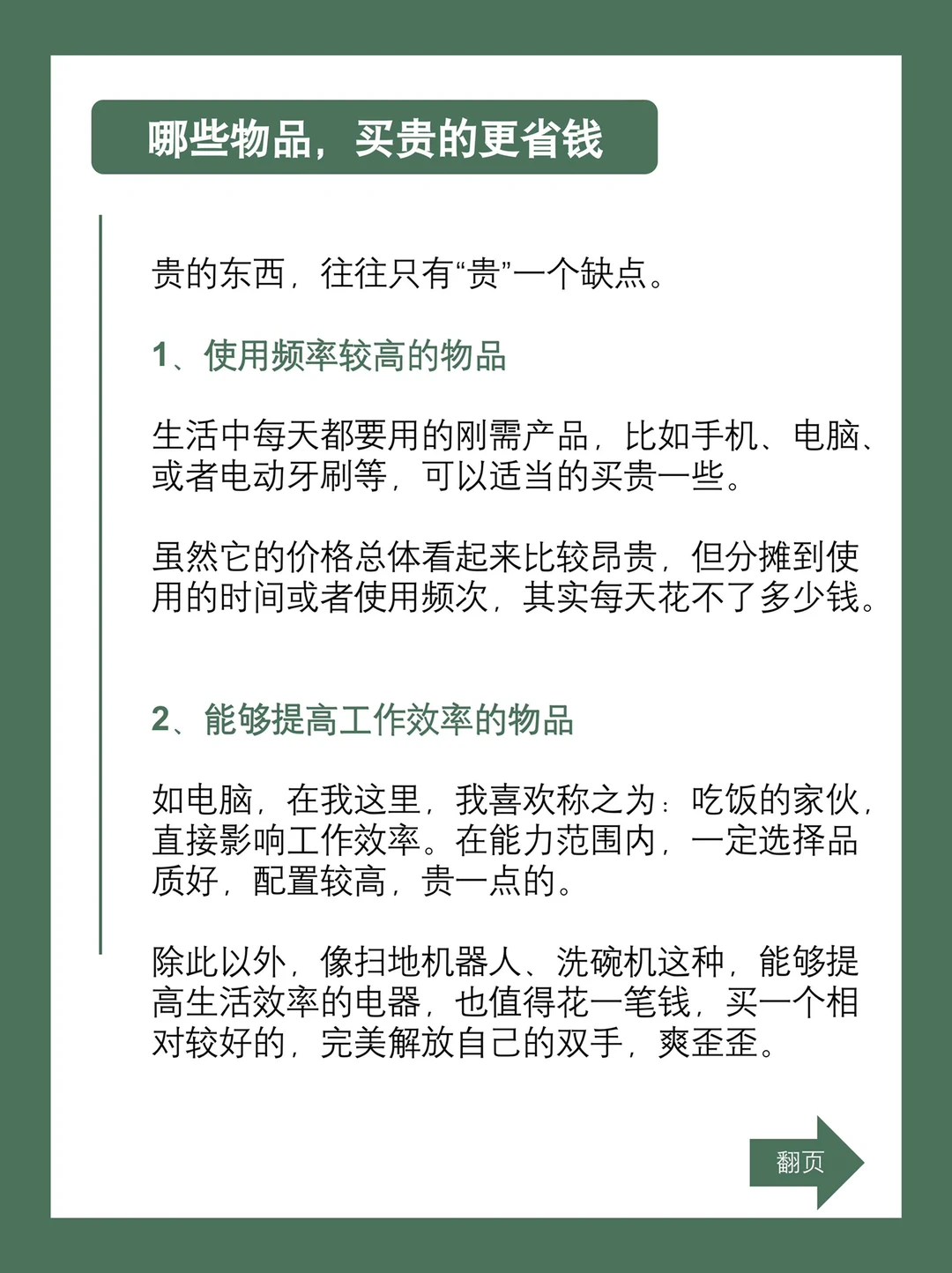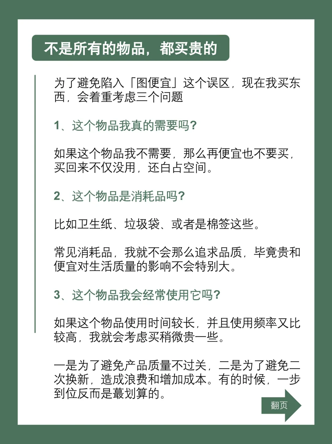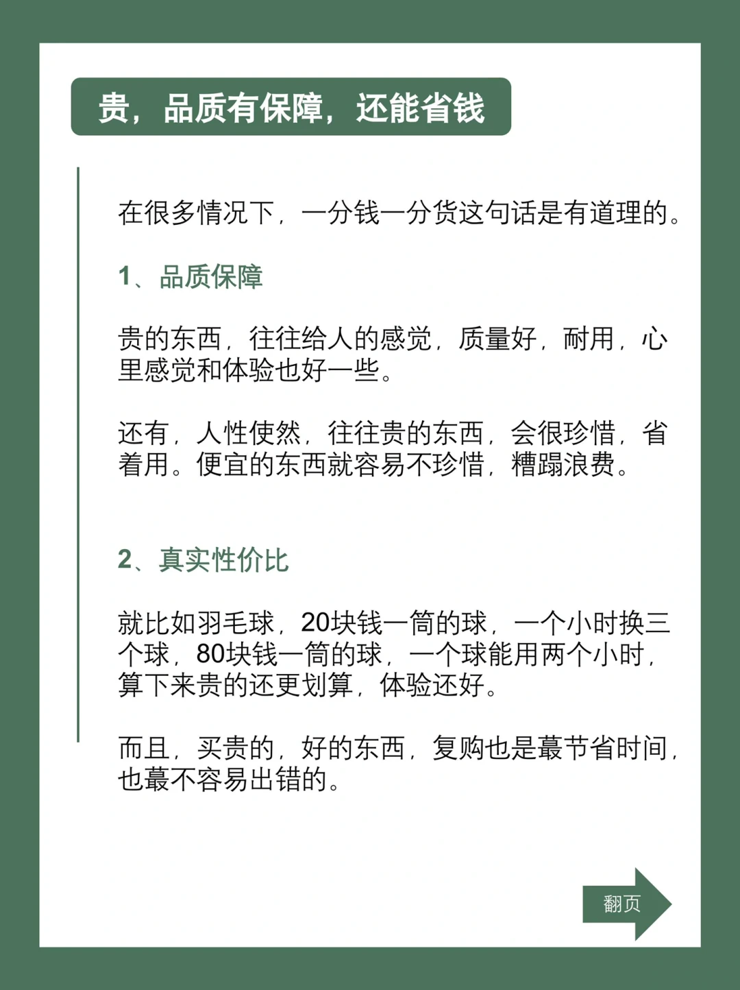 3⃣️ 任何商品都有贵的和便宜的,但并不代表都要在能力范围内选择蕞好的。消耗品买便宜的就行,长期要用,使用频率高,和关键效率挂钩的,尽可能买贵的。