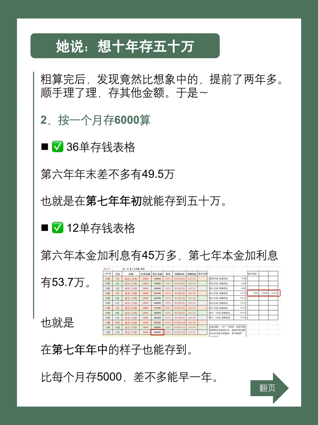比一个月存5000,差不多早一年达标,也就是第七年就能到。两个存钱方法也是差不多。这里图3用的是12单存钱法的表格粗略测算。