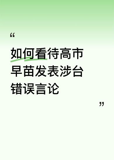 如何看待高市早苗发表涉台错误言论警惕复活的日本右翼,这个早苗上任,不管这些年来世界的变化,不记得二战日本投降,公然涉足台湾,拿台湾说事,现在还要说台湾有事,日本有事,拒绝道歉,想要动武,对这样一个面丑心恶的妖婆,人类的绊脚石,应该踢开,一是下台谢罪,二是枪口对准早苗。[发怒]