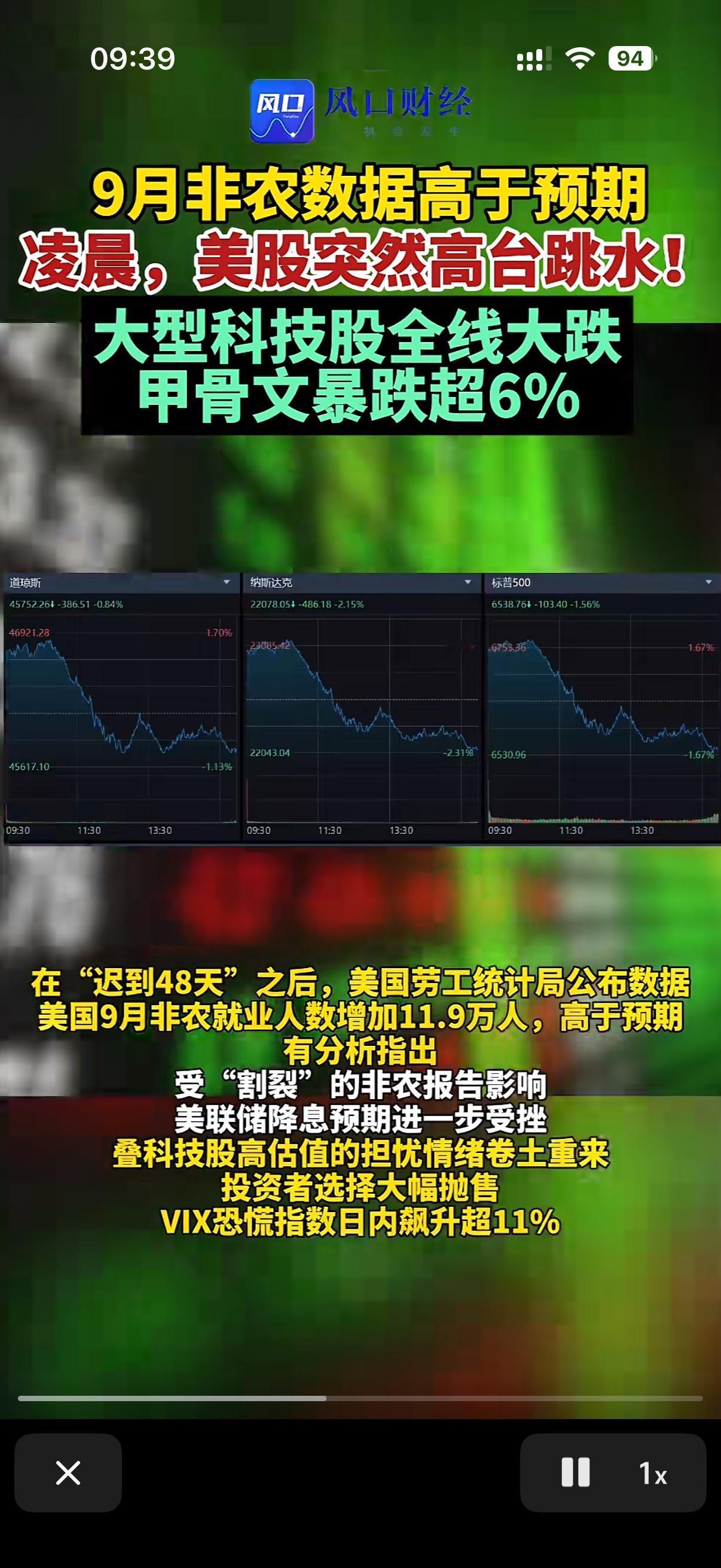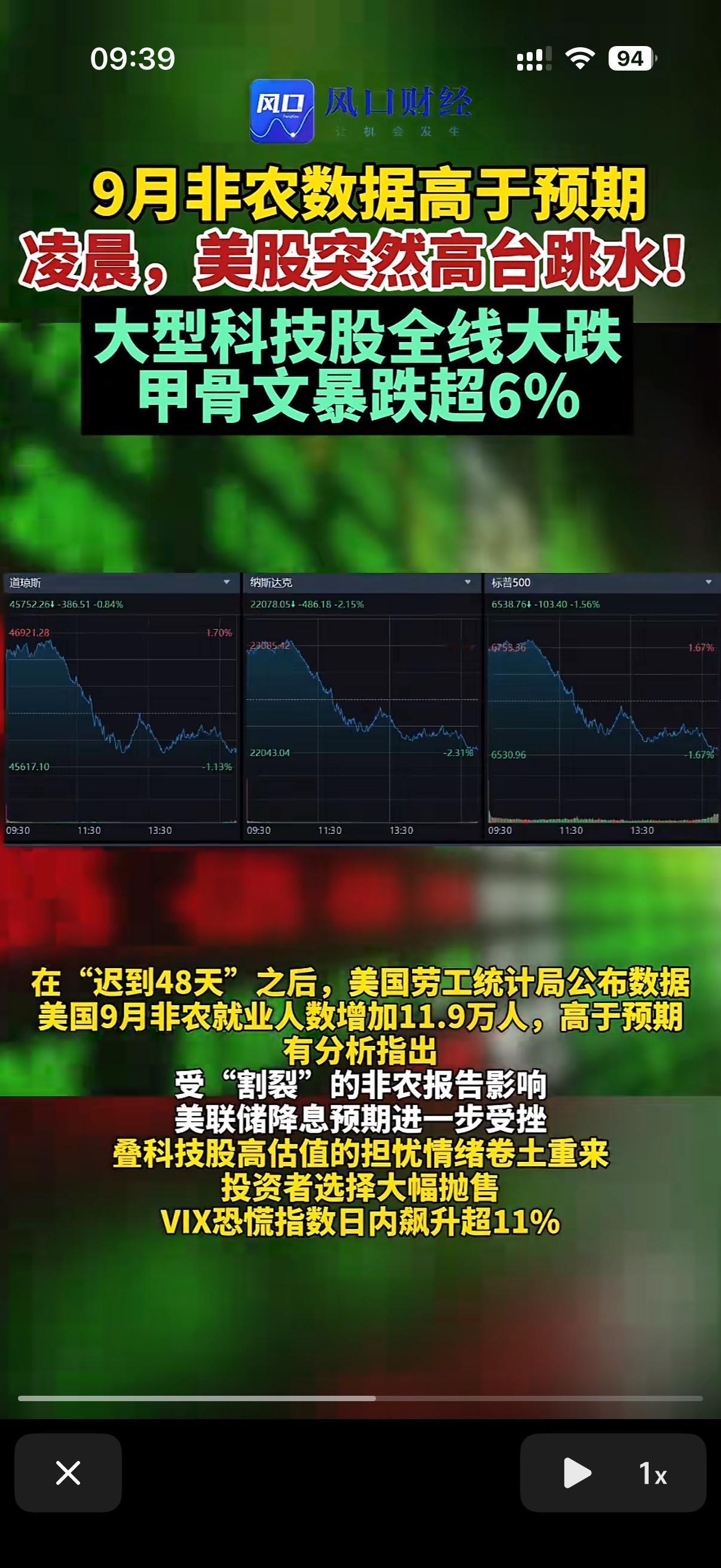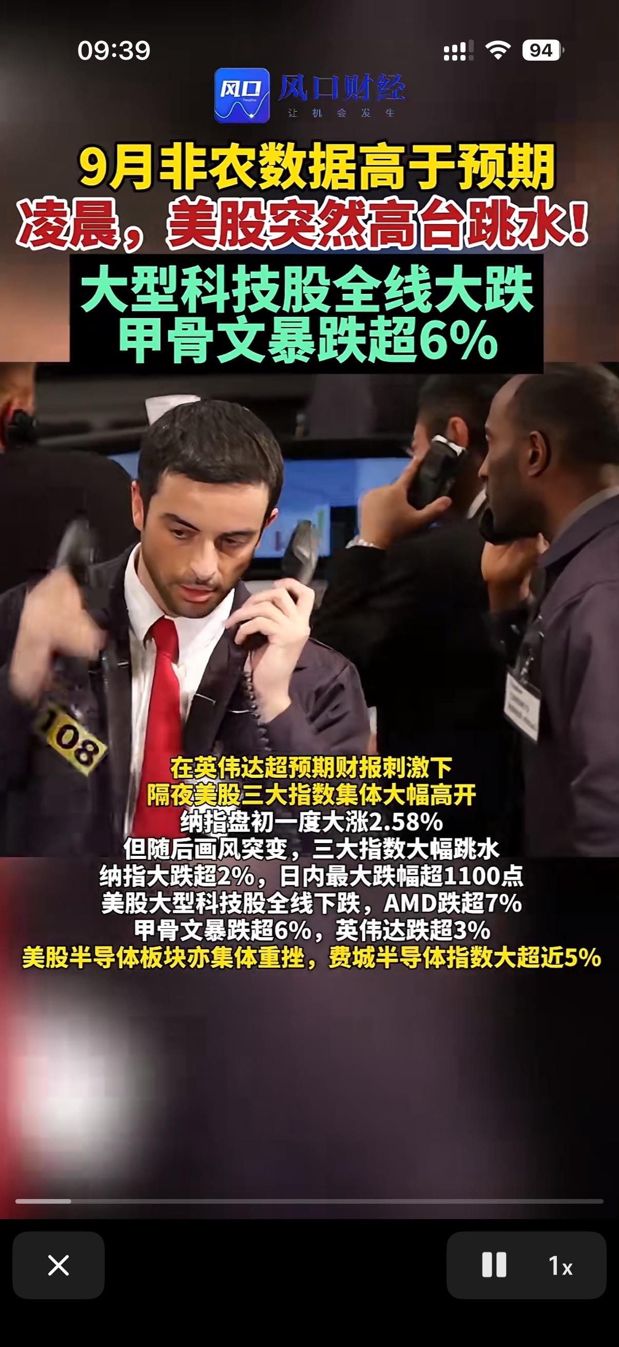 美股暴涨之后出现暴跌! 昨天白天11.20号美股因为众多科技股上涨,带动整个美股暴涨! 可是随着美国非农数据的出现,每股突然暴跌!把上涨带来的利润全跌回去不说还继续下跌! 很多人说科技公司的财报和非农数据,和现实给人的表现完全不一样! 都在担心第三季度的财报是集体造假! 巧合的是正在这个关键时期,国内罕见的提醒跨境投资者,现在美股基金的溢价出现不正常的过高,提示投资者注意资金风险。一时间人心惶惶! 提示投资有风险!理智进入资本市场!美股 美股盘后重挫 美股断崖式下跌 美股走低