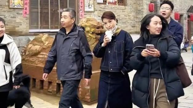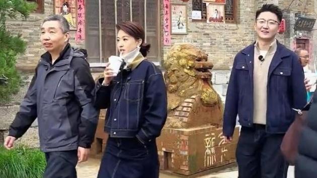 46岁的张蕾和老公逛街被拍,状态也太好了吧!牛仔套装配长靴,盘着染发精气神十足,
