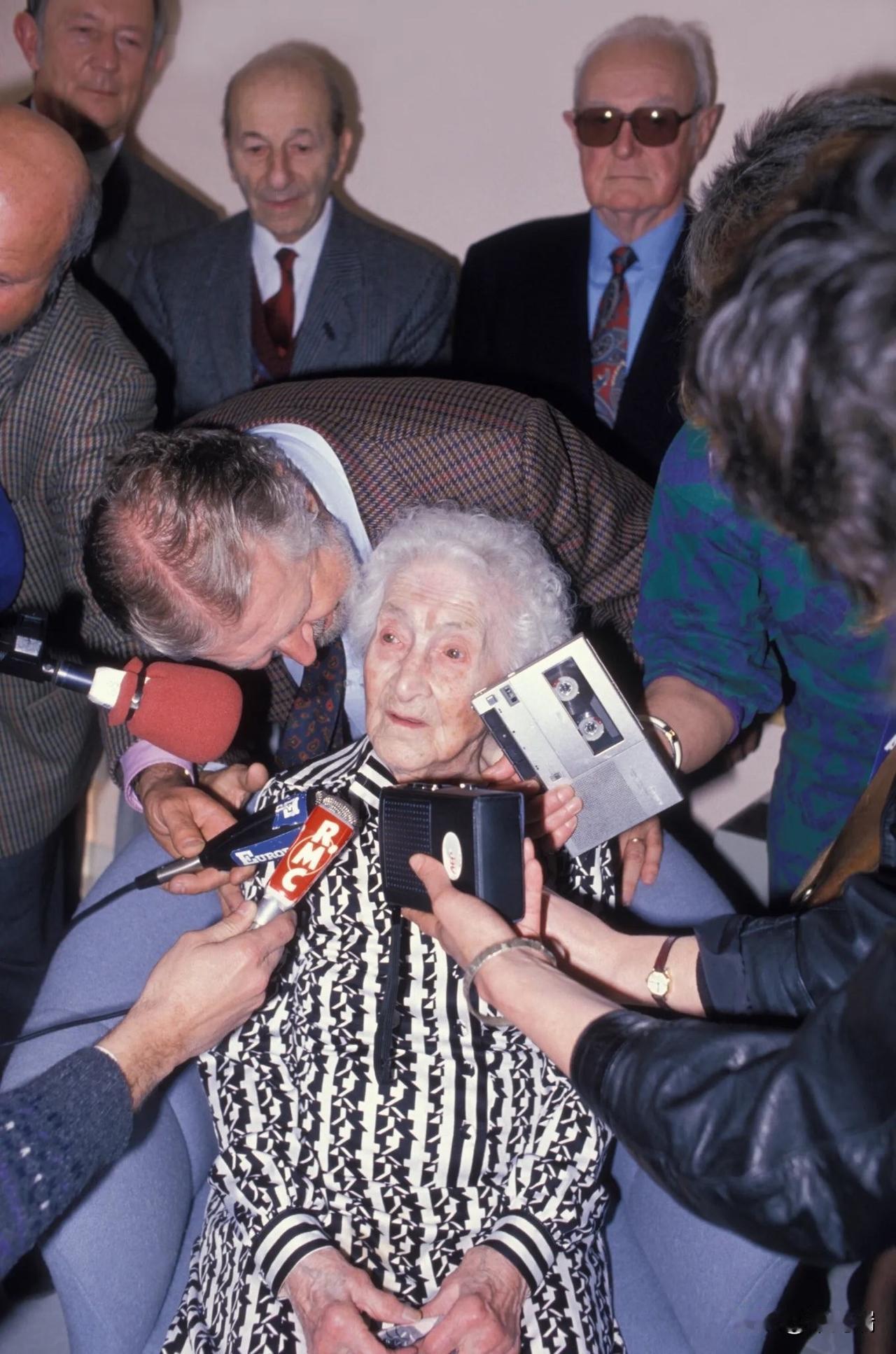 法国历史上最长寿的人类——珍妮·路易丝·卡尔芒于1997年2月21日庆祝了她的122岁生日,并在几个月后去世。她也是最后一位见过文森特·梵高的在世之人,她形容梵高“粗鲁、丑陋,而且浑身散发着酒气”。 1986年,卡尔芒以111岁高龄成为法国最长寿的人。在梵高迁居阿尔勒一百周年之际,卡尔芒的知名度显著提升。1888年2月至1889年4月,卡尔芒13至14岁。她曾向记者透露,当时她通过未来的丈夫在叔叔的布料店里认识了梵高。她回忆说,梵高当时用一种居高临下的眼神看着她,似乎对她不屑一顾。她形容梵高的性格丑陋、粗鲁、“非常令人讨厌”,还说他“浑身散发着酒气”。卡尔芒表示,她原谅了梵高的无礼。 1988年,她被吉尼斯世界纪录认定为世界上最长寿的人,当时她112岁。然而,老年学研究小组随后确认了伊斯特·威金斯(1874年6月1日—1990年7月7日)的年龄,这意味着卡尔芒实际上是在1990年成为世界上最长寿的人。114岁时,她曾在1990年的奇幻电影《文森特和我》中短暂露面,在片场外走动并回答问题。