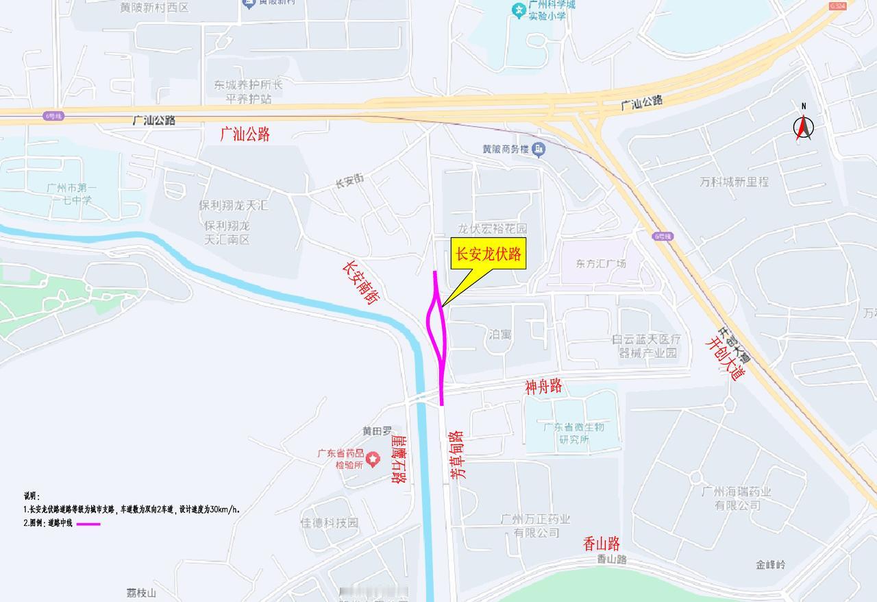 黄埔区将新建长安龙伏路,有效缓解广汕路右转开创大道压力! 联和街长安片区道路完善工程位于广州市黄埔区联和街长安片区、神舟路北侧。 本项目拟新建一条道路即长安龙伏路,全长约167米,联通神舟路和神舟街。道路于现状龙伏涌两侧分幅布置,路线标准总宽度约为21~46米,等级为城市支路,双向2车道,设计速度30公里/小时;同时配套建设两座箱涵。 建设内容包括:道路工程、交通工程、给水工程、排水工程(最大排水管径为DN1000)、照明工程、电力管沟工程、绿化工程以及管线综合等。 项目总投资约为2047.61万元(含征拆用地),其中工程费961.77万元。 本次设计施工总承包最高投标限价914.78万元。 计划工期:自合同签订之日起 300 日历天,其中: 设计工期:120日历天; 施工工期:180日历天。 长安龙伏路建成后,广汕路公路将可以通过龙伏路、芳草甸路,前往科兴路、科珠路、科学大道,将大幅缓解早高峰广汕路右转开创大道压力。 目前,联和街长安片区道路完善工程正在进行设计施工总承包公开招标。