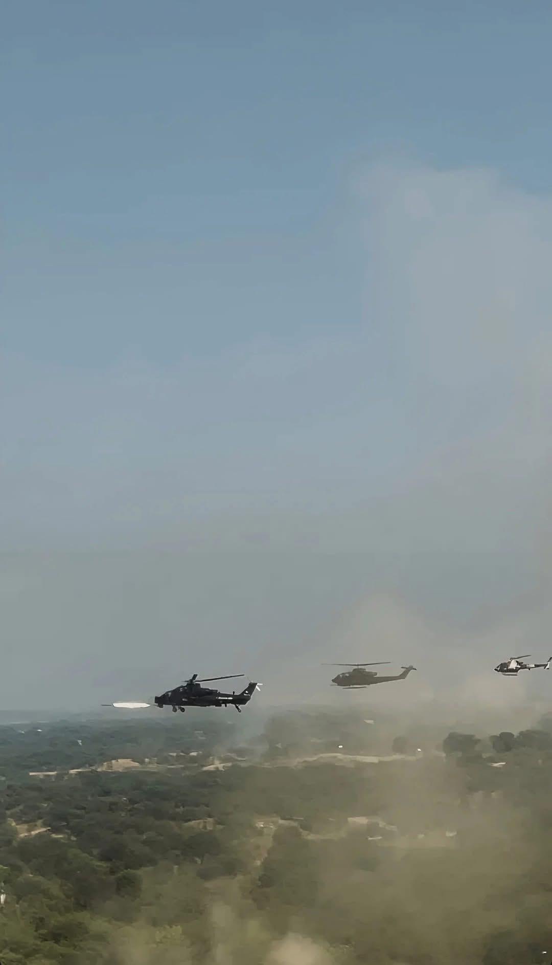 演习中的巴基斯坦陆航天朝造Z10ME和美国造AH1F集合训练。考虑到巴基斯坦还有米35,三大强国伺候他一人的目标get