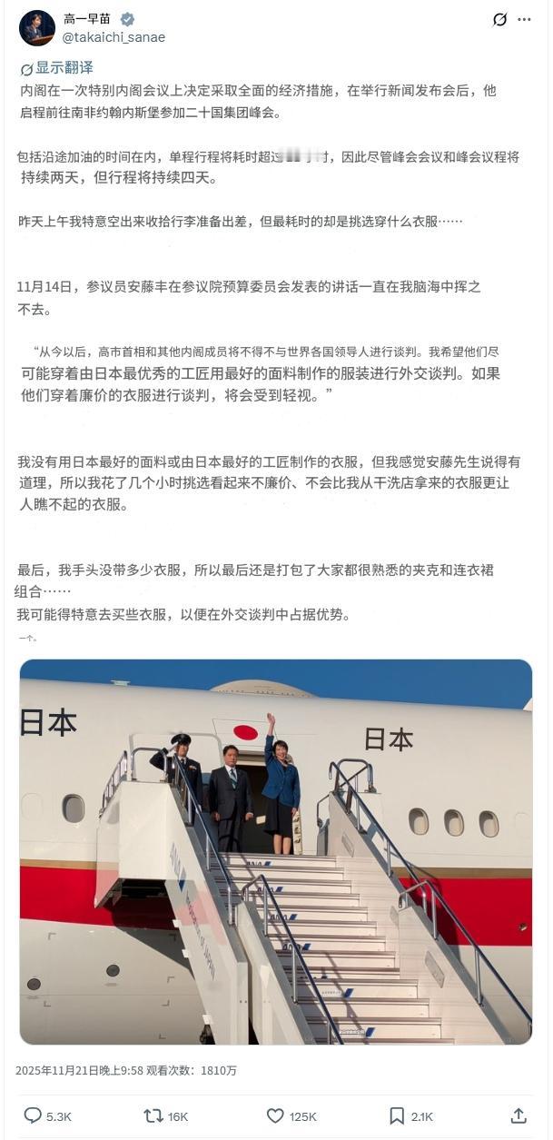 高市早苗:我可能得特意去买些衣服,以便在外交谈判中占据优势。