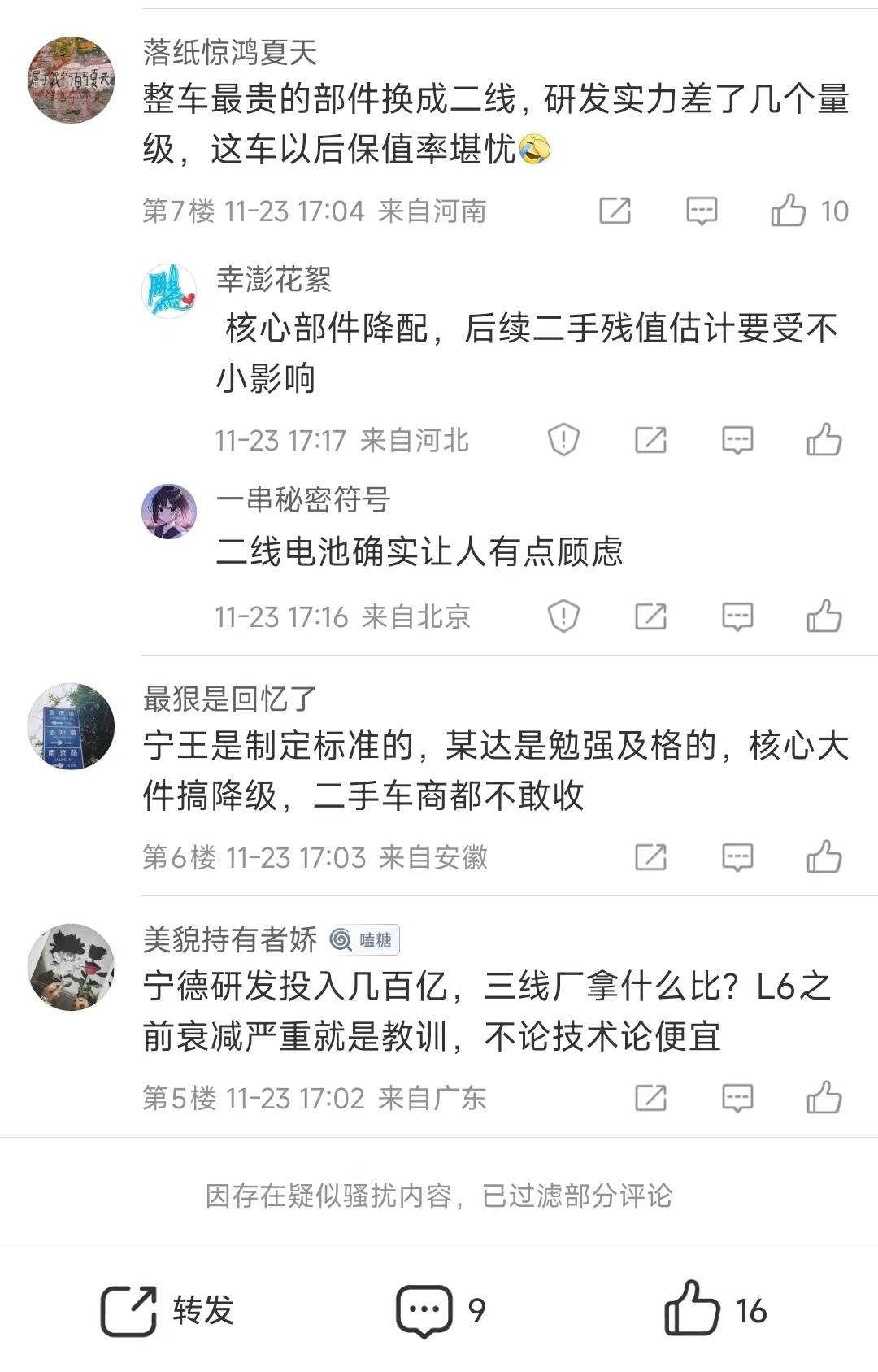 不得不说,这质量真是秒杀一堆车企!!理想忽视这块的投入,打输了一点不意外!我这小微博突然同一时间被组团光顾,清水衙门有点啥一眼看穿