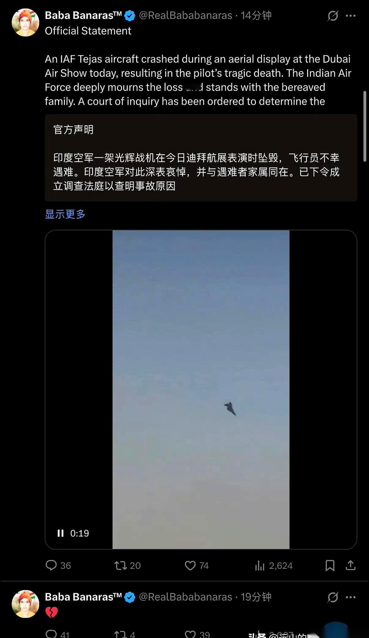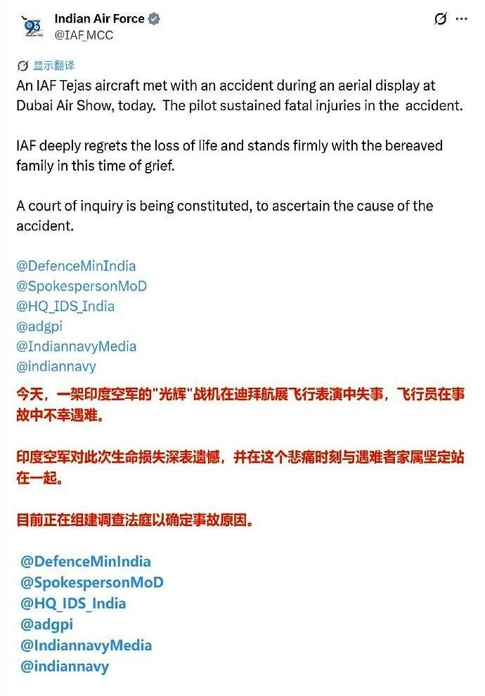 迪拜航展,众目睽睽之下,一架“光辉”战斗机,直挺挺地从天上栽了下来。 飞行员没了。 表演,变成了直播的葬礼。 说句扎心的话,航展这地方,就是个名利场,只不过赌注是命。全世界的眼睛都盯着你,你代表的不是自己,是背后的国旗。 那种压力,能把人逼疯。 你开着“光辉”,心里却装着个“苏-57”的梦。你想在全世界面前,拉出一个最漂亮的机动,你想成为全场的焦点,你想让所有人为你尖叫,为你背后的那个国家喝彩。 你想证明,“我们也能行”。 但物理定律不讲情面,机械性能也不会因为你的雄心壮志就突然爆表。 一声巨响,梦就碎了。 留下的是一地残骸,和一个再也回不了家的英雄。 人呐,最怕的就是认不清自己。尤其是在那种万众瞩目的舞台上,总想踮起脚尖,去够一个本不属于自己的高度。 代价,有时候真的承受不起。