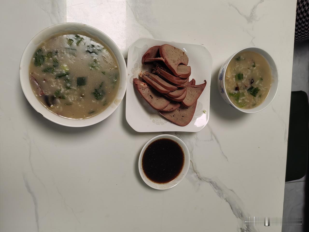 早上6点起床给孩子准备早餐!打算做皮蛋猪肝粥!因为这个粥煮起来时间长,所以今天起的稍早一点。 我准备了:大米一勺、一小块猪肝、皮蛋2个以及青菜、姜丝、胡椒粉、少许盐。历史40分钟香喷喷的皮蛋猪肝出锅了! 6点50分叫孩子起床,没想到她一直到7点10分才收拾好!结果又成了一个没时间吃饭的早上!匆忙的送她去上学!