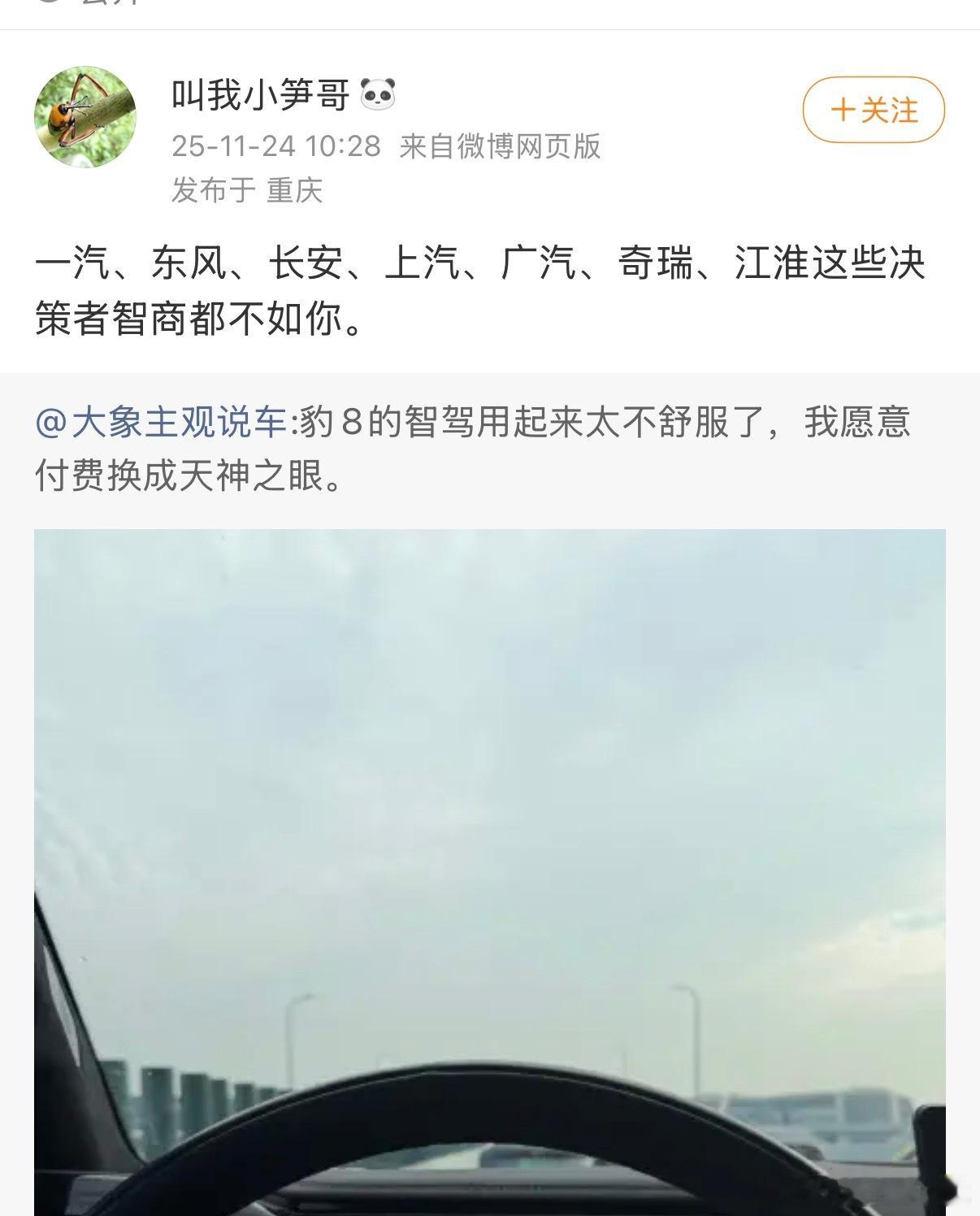豹8的智驾用起来太不舒服了,我愿意付费换成天神之眼。