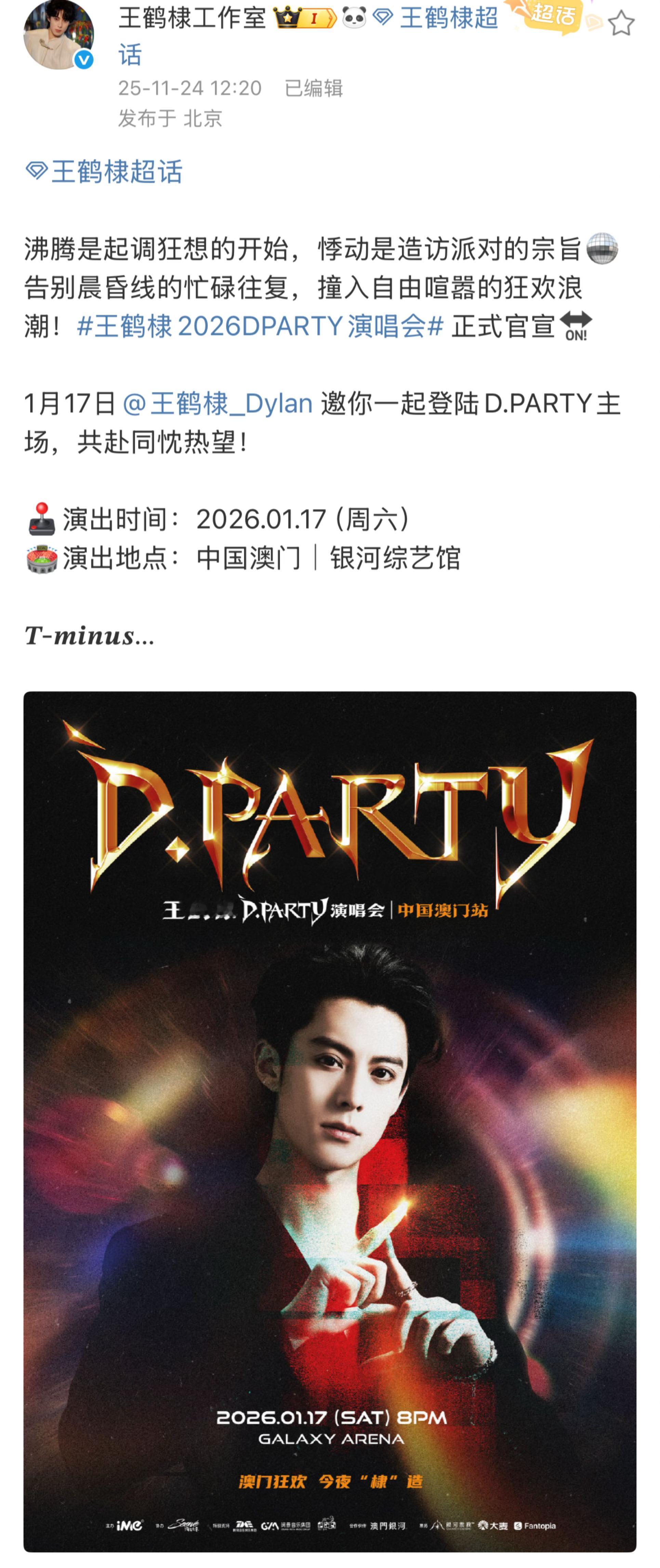 📣王鹤棣2026澳门演唱会官宣,棣棣闷声干大事儿啊。